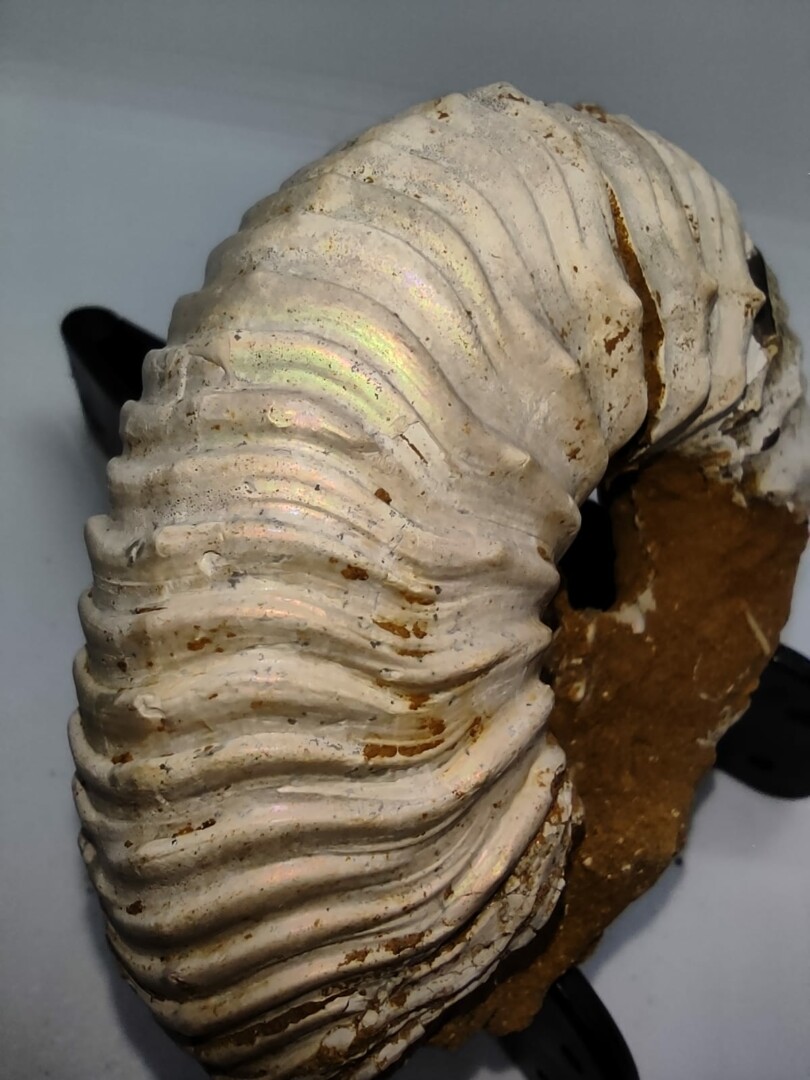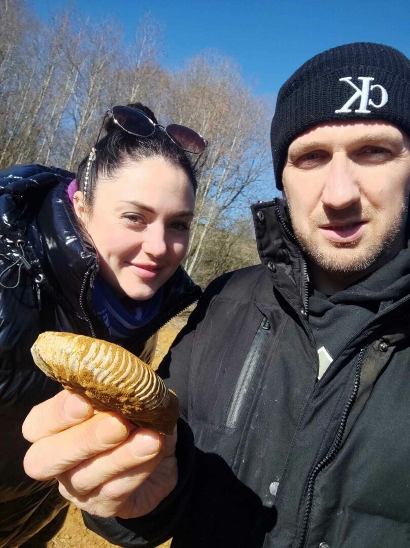 Maždaug prieš mėnesį čia su širdies draugu (jį, kaip ir sūnelį, panevėžietė taip pat užkrėtė savo netradiciniu pomėgiu) apsilankiusi Simona rado tikrų tikriausią lobį – opalizuotą amonitą. Kaip juokauja, tikriausiai dinozauras atkando gabalėlį, bet beveik visas išnykusio galvakojo kiautas liko sveikas. Įdomiausia tai, kad šviesoje jis sužėri žalsvai rausva spalva.
