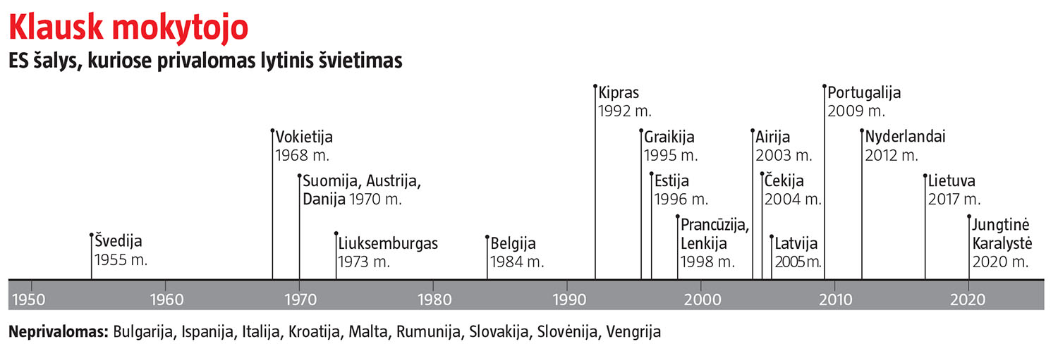 Estijoje lytinis švietimas – pavyzdinis, o Lietuvoje – simptominis ir apipintas nežinomybe. Europos kontekste Lietuvos lytiškumo ugdymo situacija atrodo dar prastesnė. Daugelyje šalių lytinio švietimo programos mokyklose vykdomos jau dešimtmečius ir tik keliose jų, dažniausiai religiniais pagrindais, lytinis švietimas nėra privalomas.