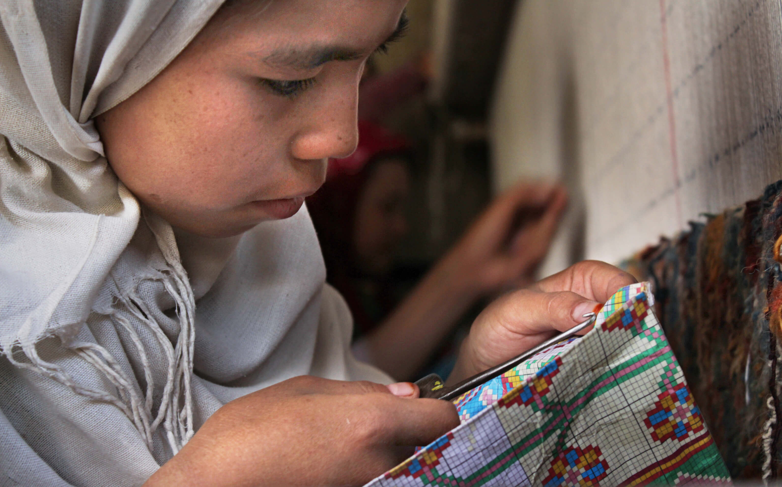Kabule studijuojanti fotografė iš Irano M. Hazara prieš dvejus metus susidomėjo, kaip gaminami raštuoti afganistanietiški kilimai. Užėjusi į audyklas, ji ten rado dirbančius vaikus ir pradėjo fotografuoti jų portretus bei klausytis istorijų. Iš mažųjų audėjų fotografė dažniausiai išgirsdavo, kad, kilus neramumams Helmando provincijoje, jų artimieji tapo šalies vidiniais pabėgėliais.