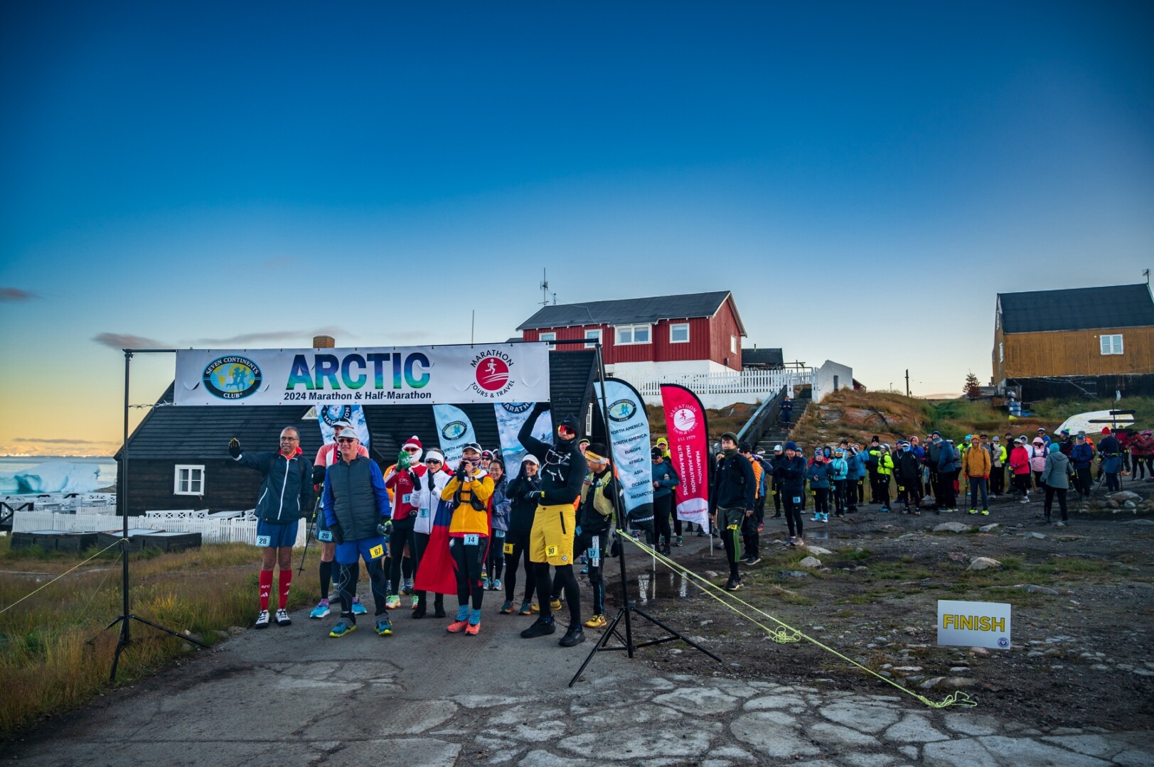 Specialiai užsakytas lėktuvas iš Danijos sostinės Kopenhagos pusmaratonio ir maratono dalyvius atskraidino į Grenlandijos Kangerlùsuako gyvenvietę. Šioji turi apie 500 gyventojų ir svarbiausią Grenlandijoje oro uostą – pagrindinį salos transporto mazgą.