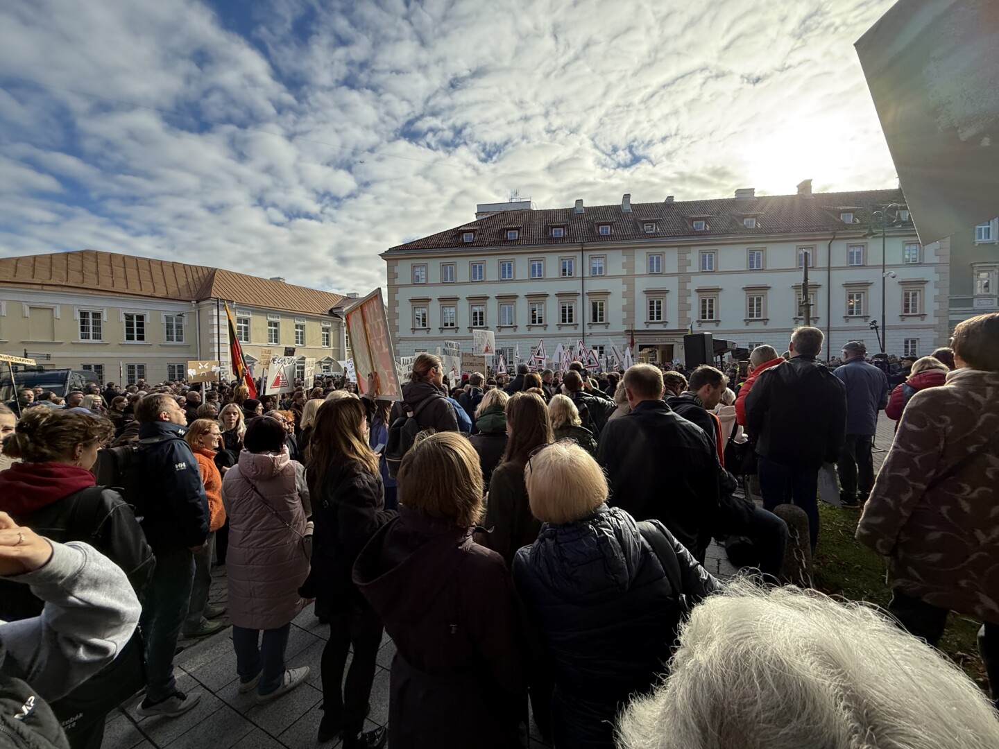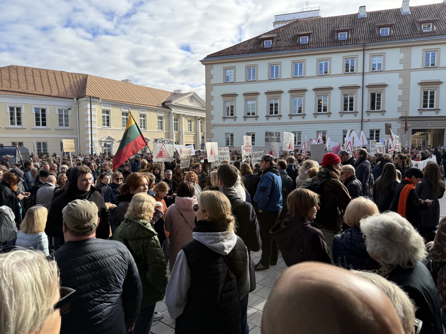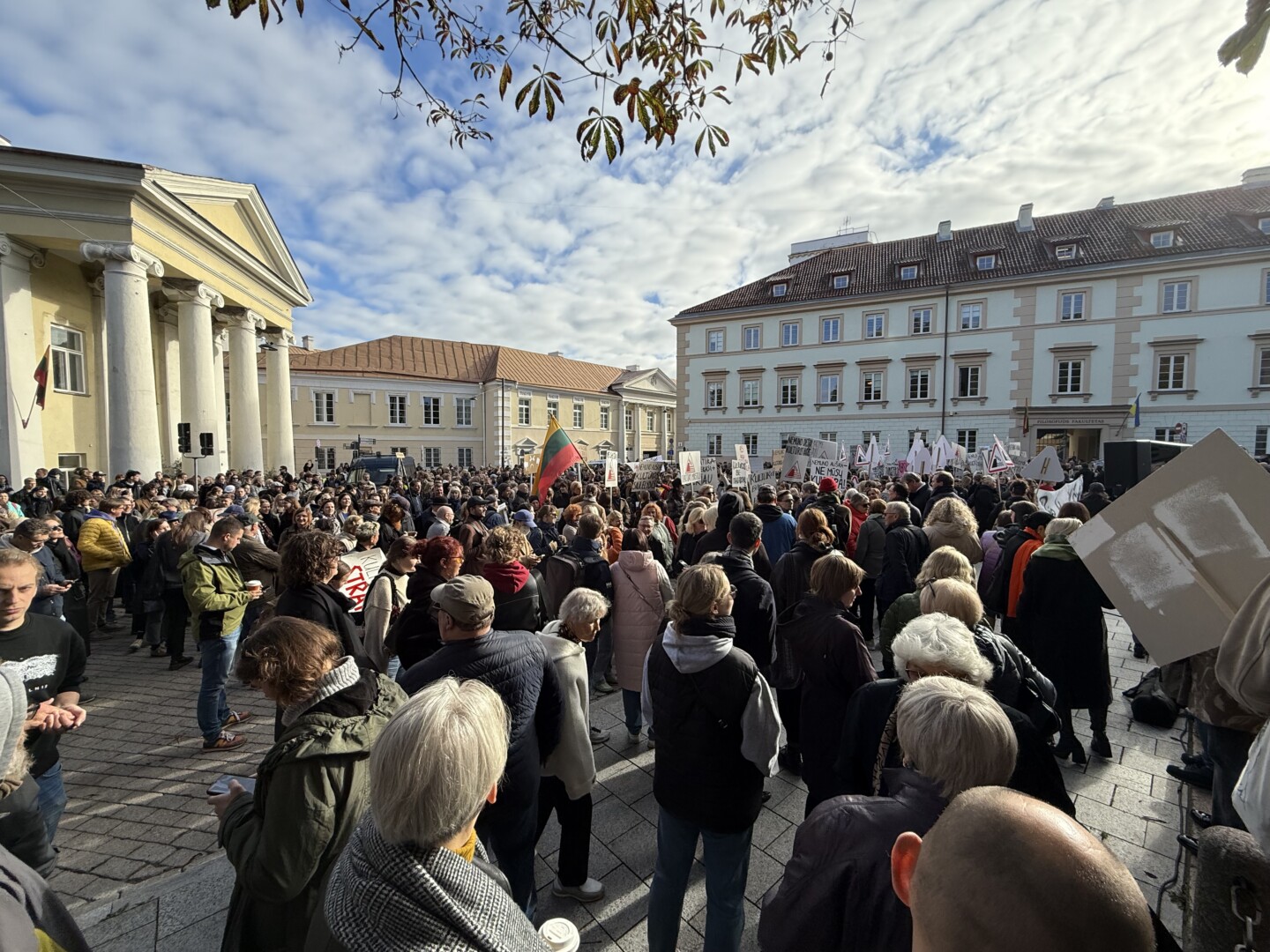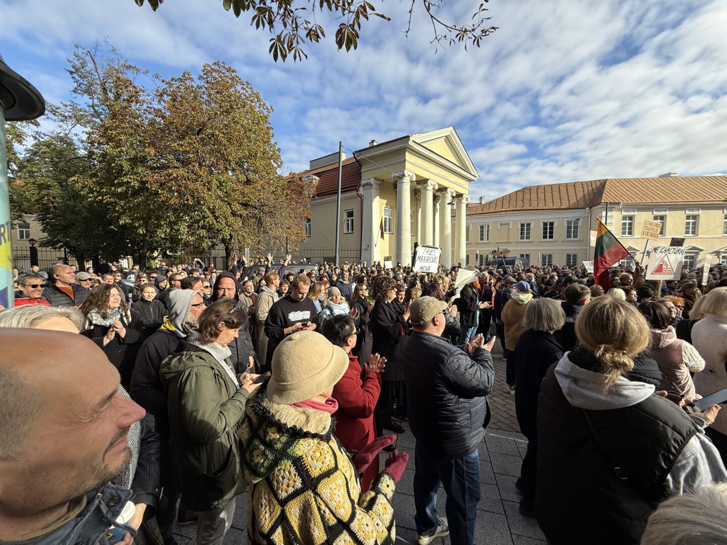 Ketvirtadienį šimtai protestuotojų susirinko Simono Daukanto aikštėje prie Prezidentūros, skanduodami gėda.