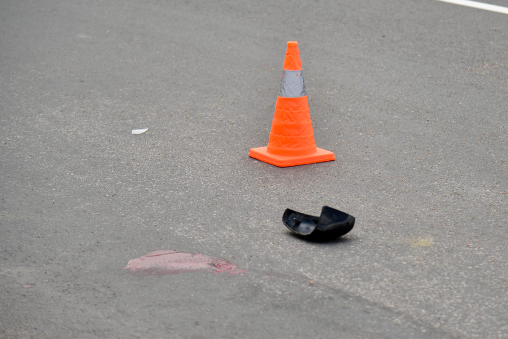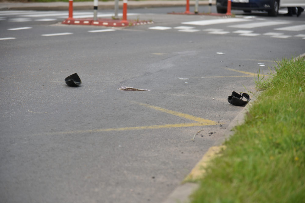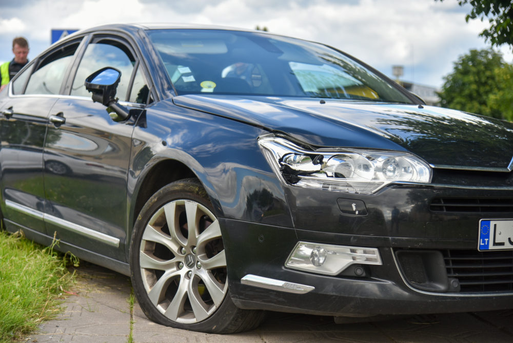 Automobiliui po avarijos numuštas veidrodėlis, išdaužtas priekinis žibintas. Nuo smūgio mašina užlėkė ant šaligatvio.
