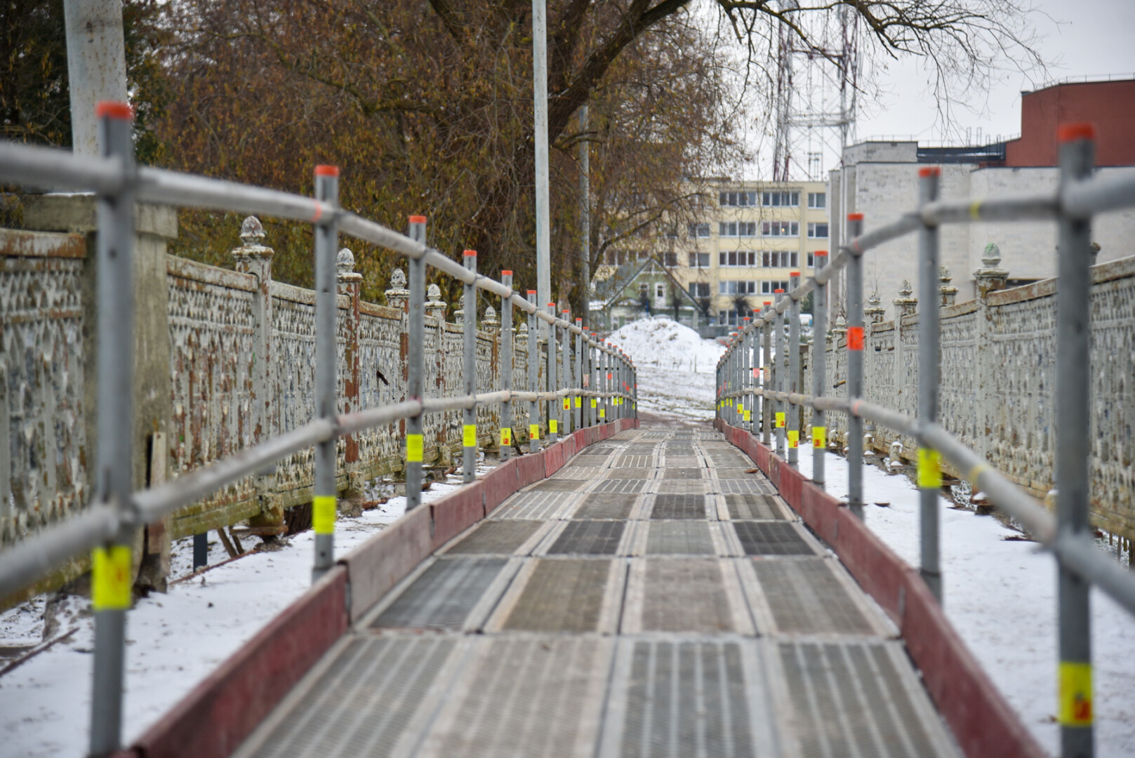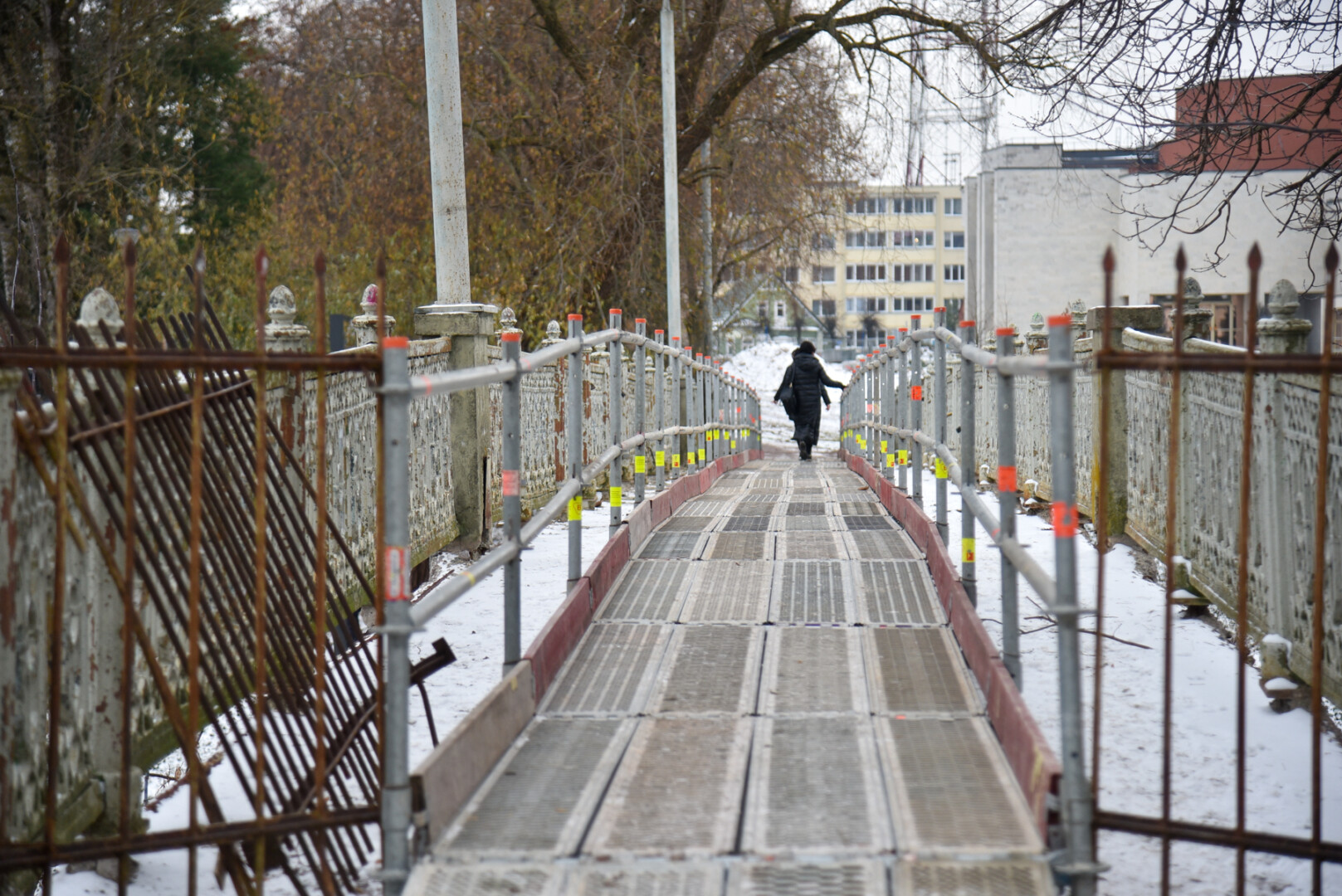 Nors tilto rekonstrukcija atidedama iki pavasario, rangovai, spaudžiami miesto Savivaldybės, pagaliau rado būdų, kaip įrengti laikiną taką.