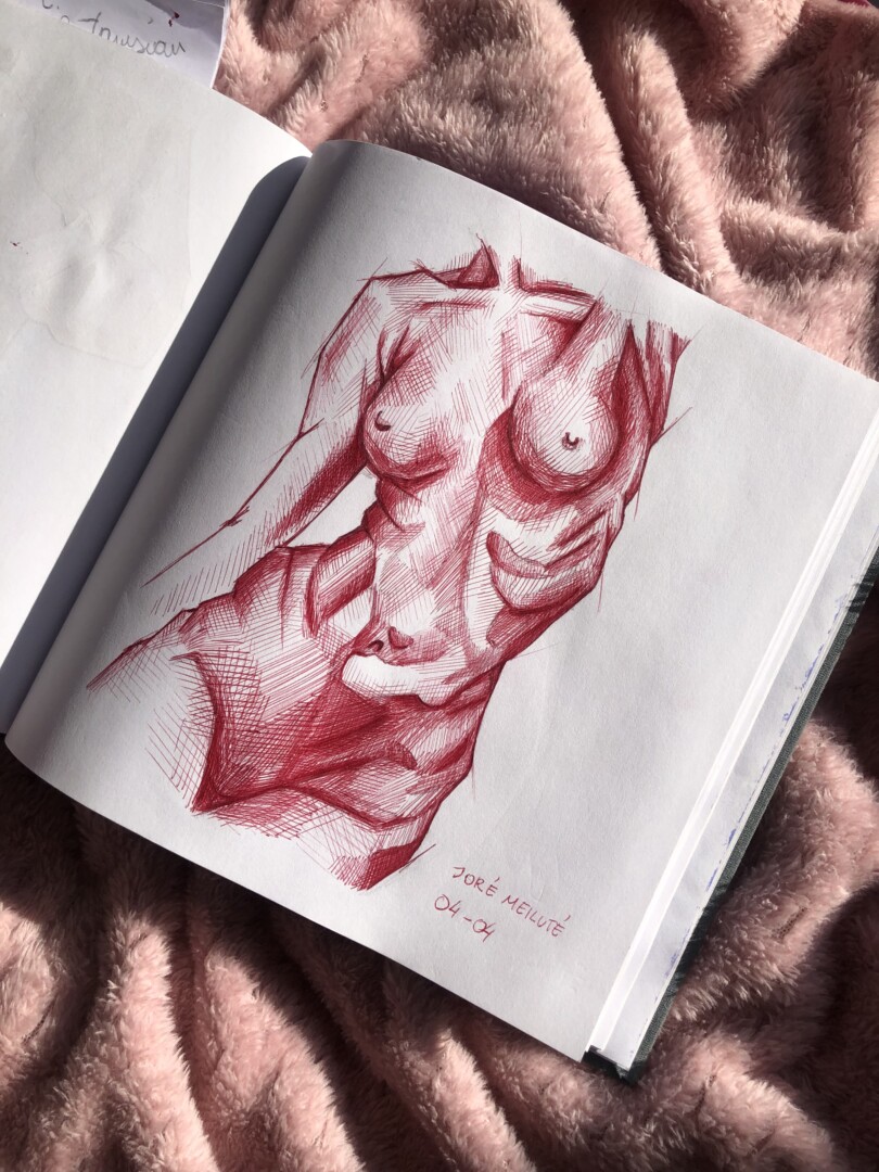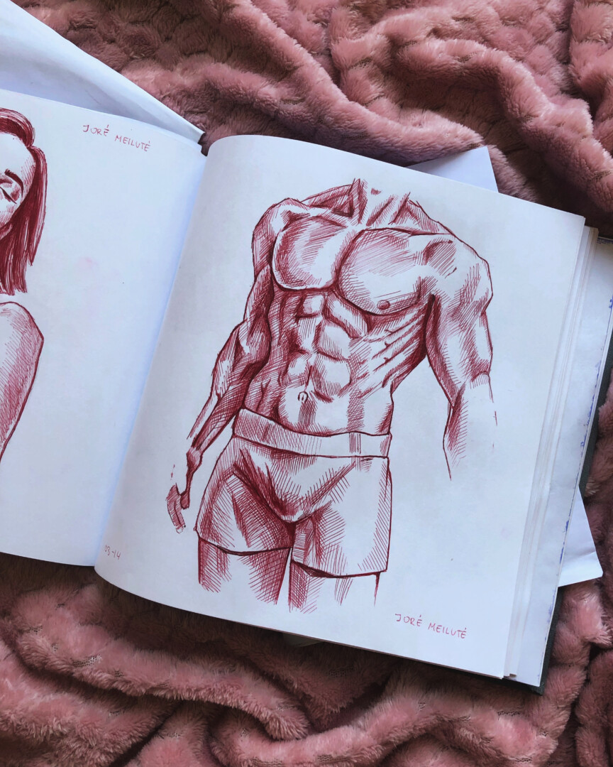 „Mane be galo žavi žmogaus kūnas ir visi jo niuansai. Dėl to vis gilinu anatomijos žinias apie kaulų, raumenų struktūrą bei išdėstymą. Žmogaus kūnas yra šventykla, sauganti daug emocijų ir potyrių. Išmanant jo sandarą, galima emocijas puikiai perteikti popieriuje“, – sako dailininkė.