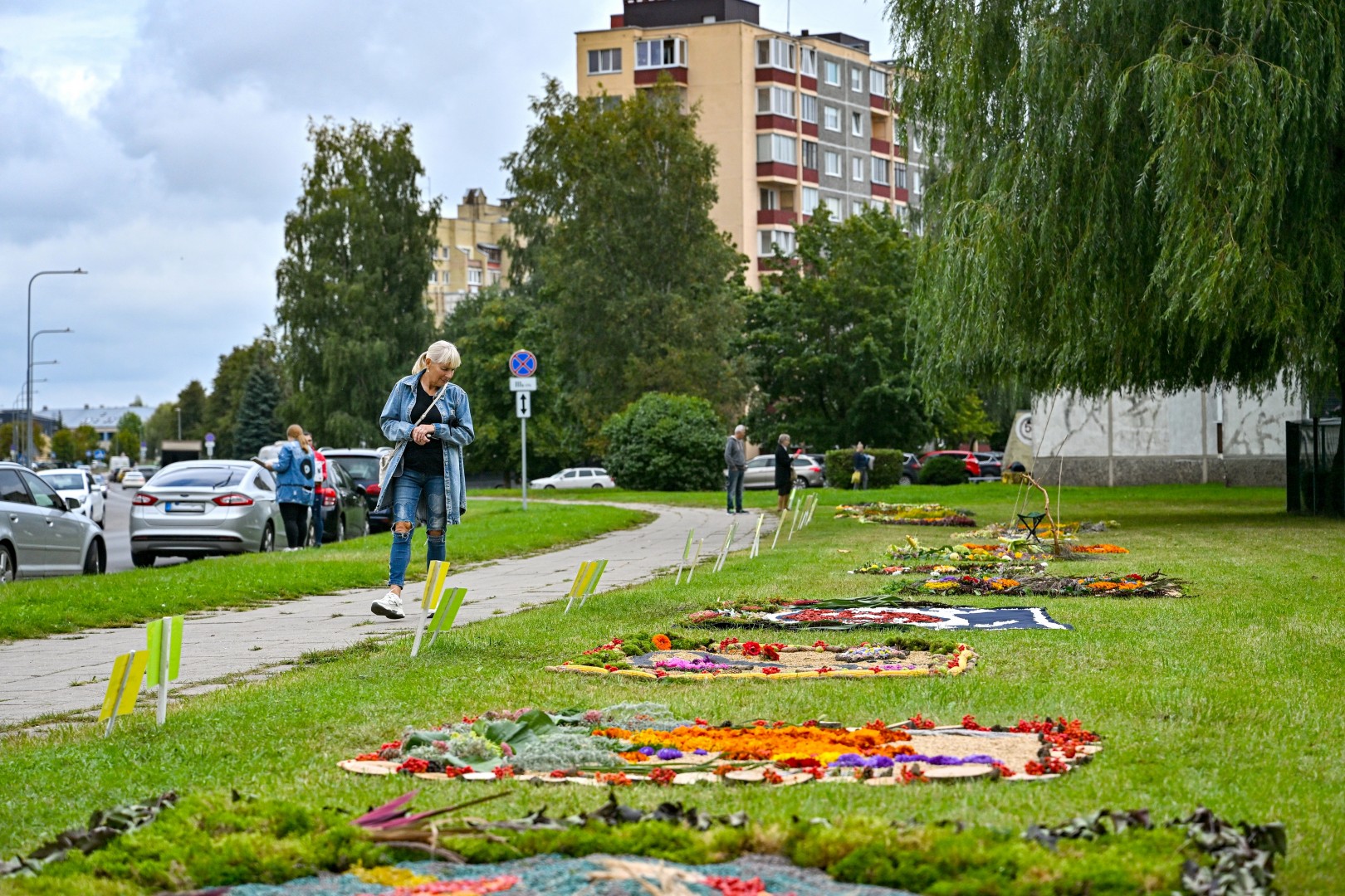 Plenero dalyvių „išausto“ 21 floristinio kilimo alėją ant pievelės šalia „Purienos“ lopšelio-darželio, Kniaudiškių g. 57, panevėžiečiai galės apžiūrėti iki rugsėjo 23 dienos.