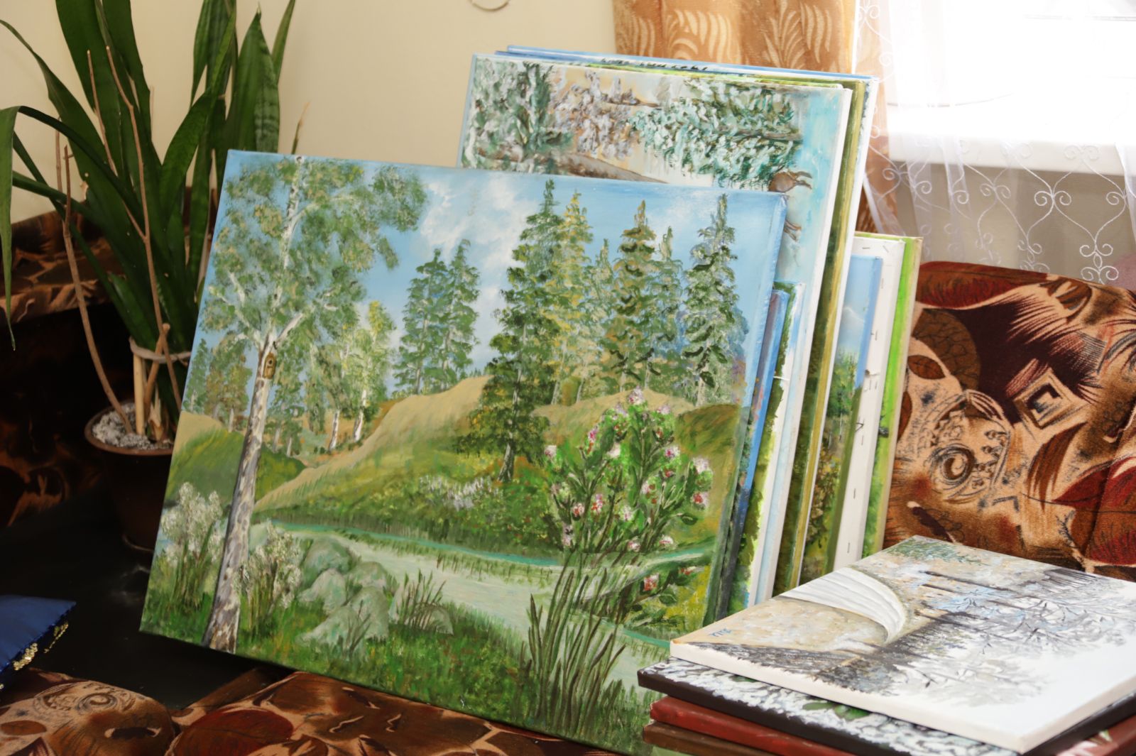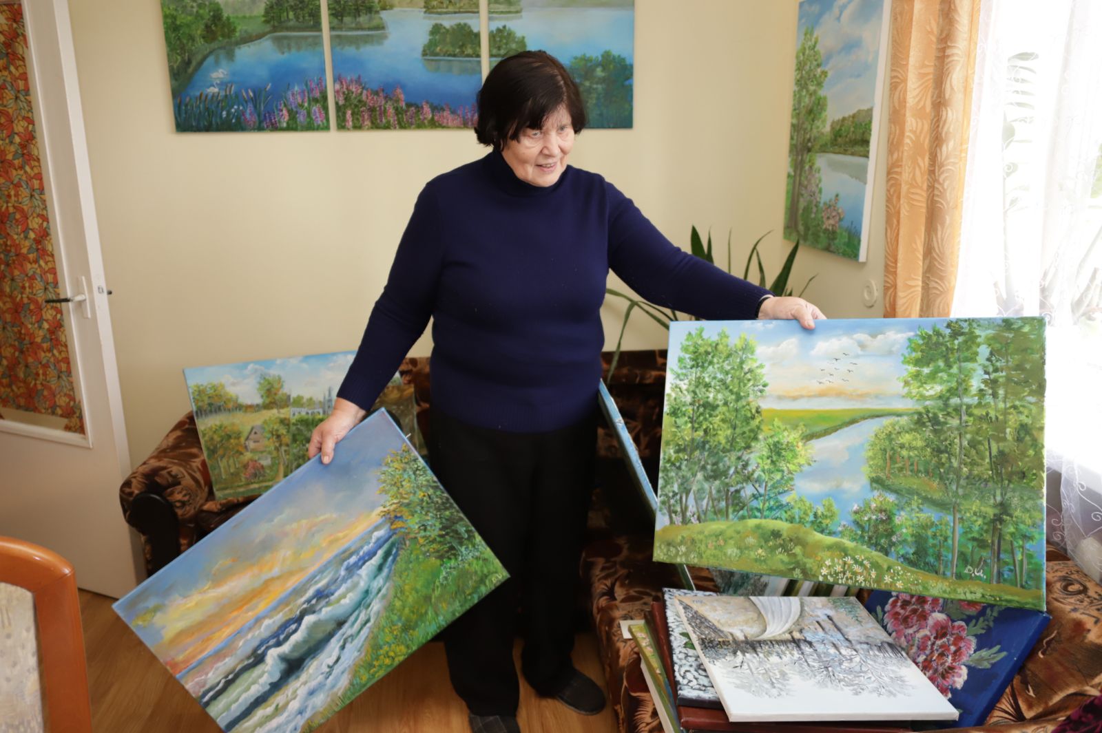 Dabar paveikslai jau nebetelpa kambaryje ant sienų. O jie – patys įvairiausi, vaizduojantys gamtą, įvairių metų laikų peizažus, jūrą, debesis, gėlių žiedus.