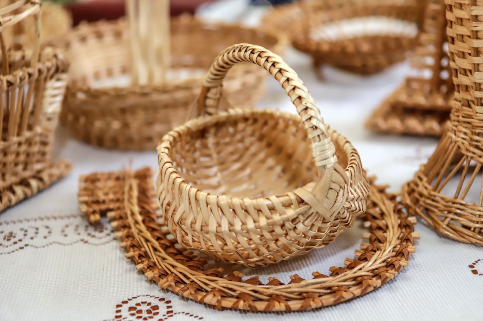 Pirmiausia ilgai pynė lėkštes, visada vieną ir tą patį modelį, paskui buvo užsakomi kitokie pynimai. Bet visada vienodi.