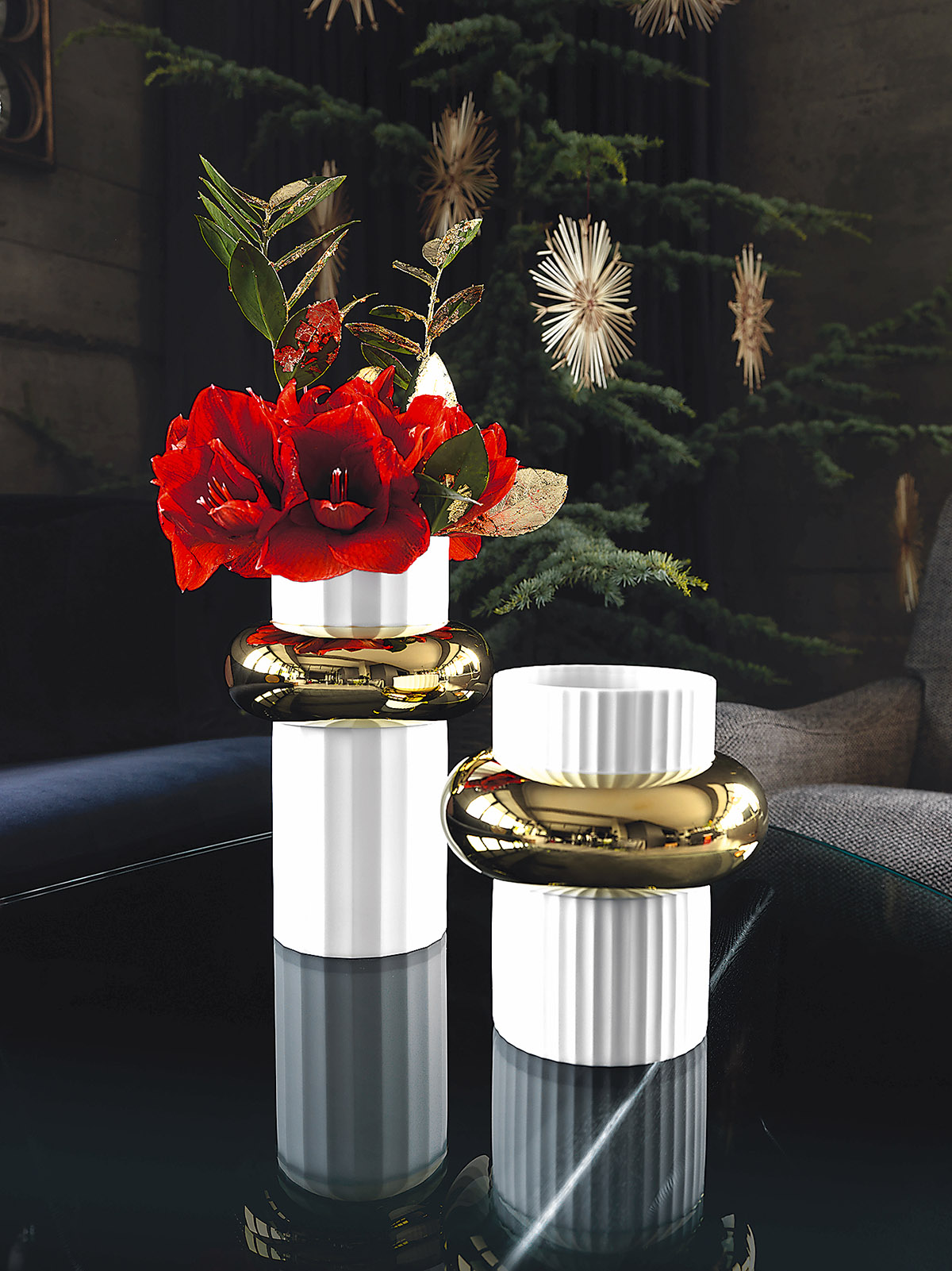 Išsiilgusiesiems subtilios prabangos, romantikos ir magiškos valgomojo atmosferos dera prisiminti, kad 2018-ųjų Kalėdos diktuoja auksinių aksesuarų ir indų tendenciją. Norinčiuosius žengti koja kojon ir su mada, ir su ilgaamže neatsibostančia klasika pradžiugins „Rosenthal“ porceliano vazos „Ode“ ir dekoratyvūs angeliukai, kurie ne tik papuoš vakarienės stalą, bet ir bus puiki dovana bet kokio amžiaus šeimos nariui. Stalo dekoro vientisumą vainikuos baltos ir auksinės spalvų indų derinys, nepalikdamas nė vieno svečio abejingo.