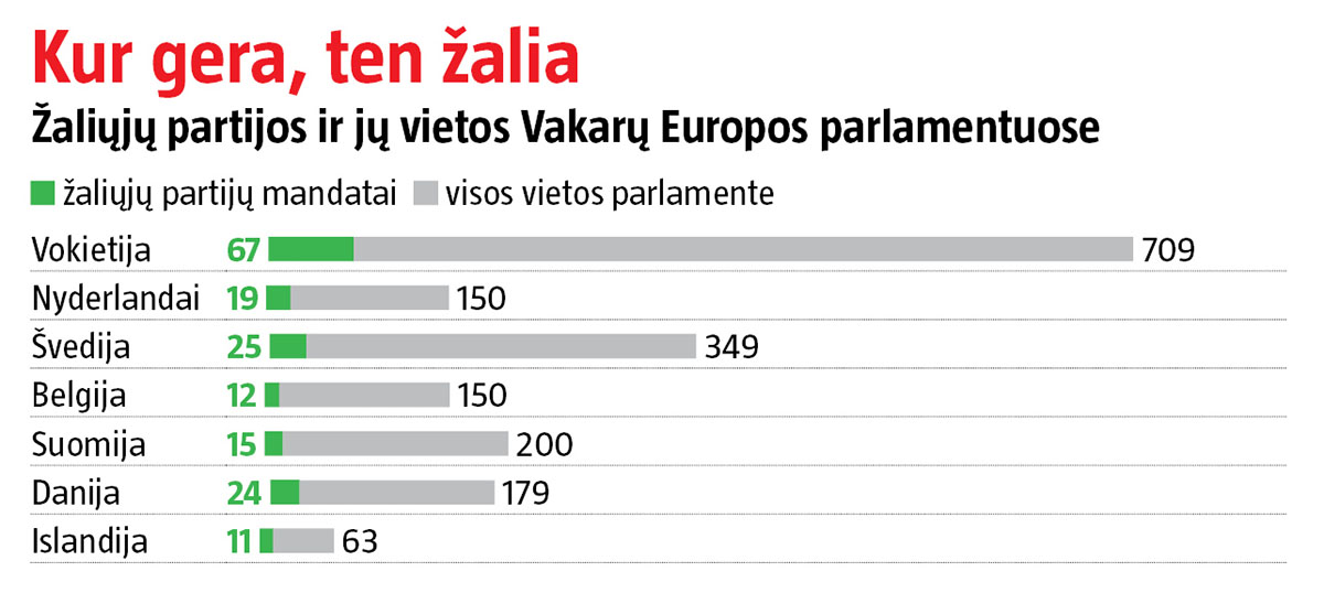 Vakarų Europos politiniame žemėlapyje žalieji yra matoma, tačiau negausi jėga. Atrodytų, paradoksalu, bet Lietuvoje žalieji atstovų praktiškai neturi.