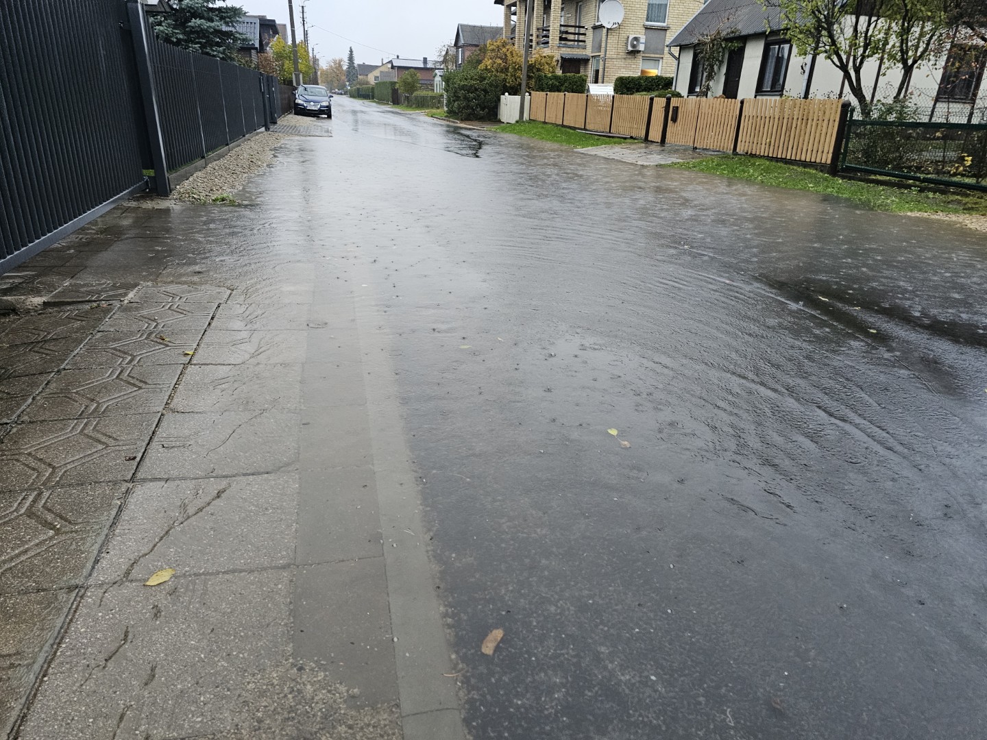 „Tačiau rugsėjo viduryje po liūties mes ir vėl buvome užsemti. O praėjęs savaitgalis buvo trečias kartas ir situacija dar baisesnė. Šeštadienį gatvėje susidariusi upė apsėmė jau penkis namus. Dvi kaimynės garbaus amžiaus, sunkiai vaikšto, kaip joms įveikti tokias balas? Gatvė tampa neišbrendama, nebent lipti tvoromis“, – piktinosi B. Jakštonienė.