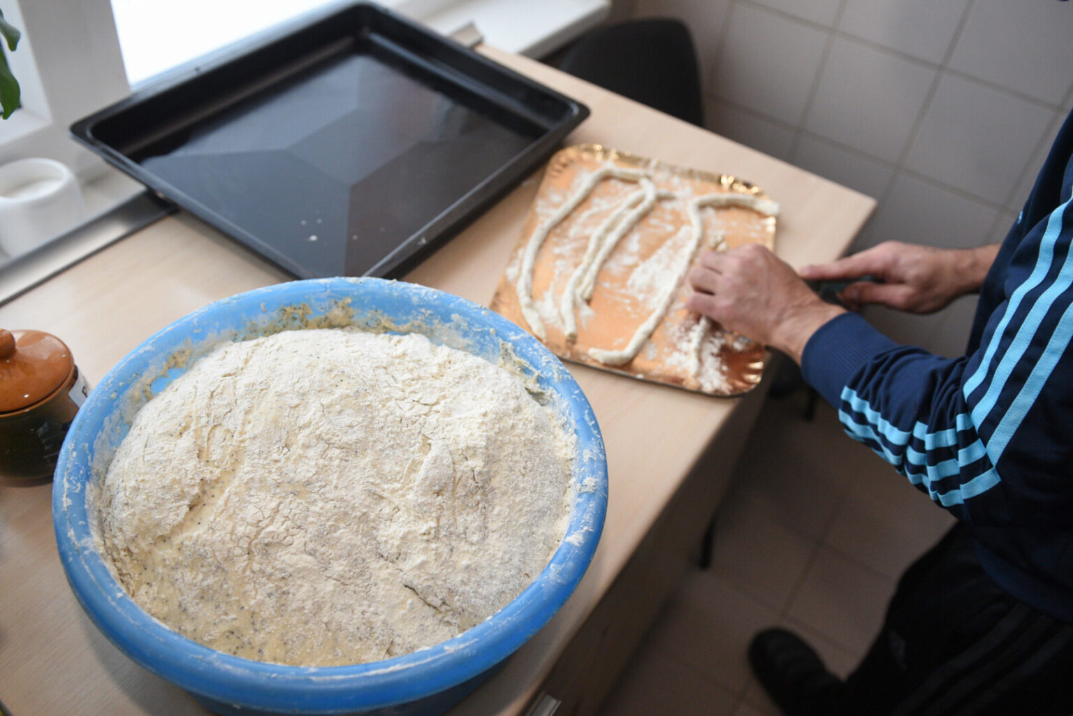 Panevėžio socialinių paslaugų centro nakvynės namų vedėja socialiniams reikalams Ermina Šejenko pasakoja, kad jau tapo tradicija visą bendruomenę prieš Kalėdas pakviesti kartu išsikepti kūčiukų.