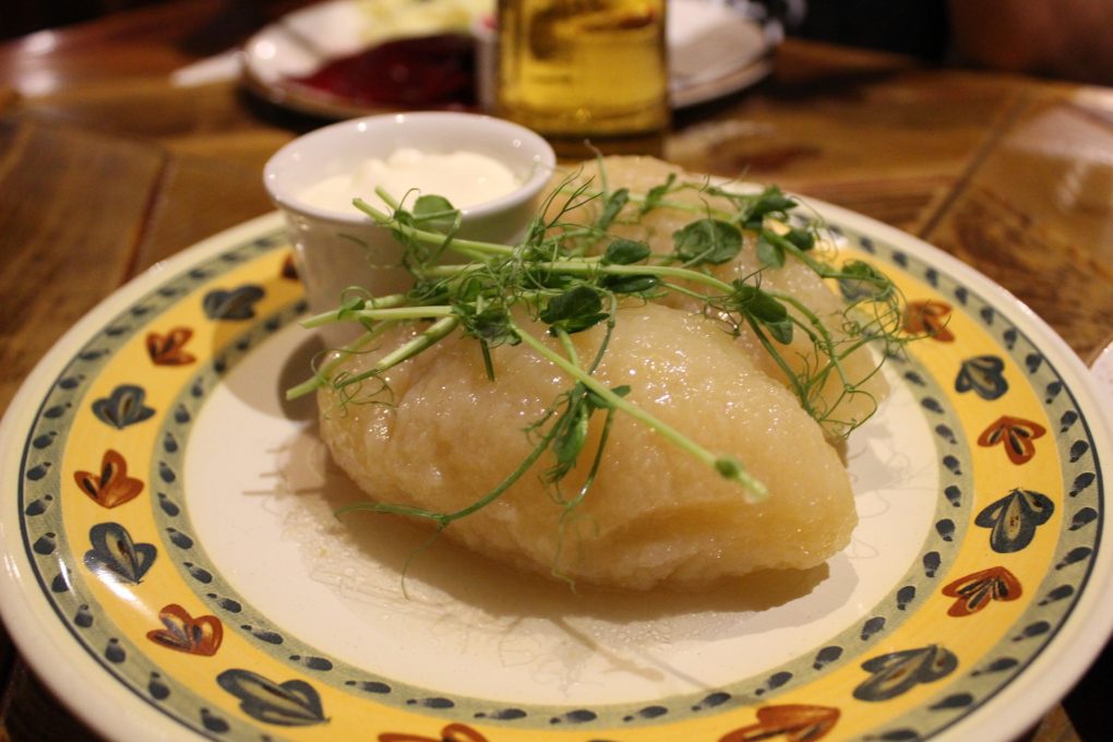 Mes valgėm Kaune forto dvare Akropolyje, ryte neturėjo bei kavos, nei arbatos, bet vedaru ir žemaičių blynų buvo. Paragavom, palikom, bulvės rūgščios, lyg būtų kokiu 4 dienų.