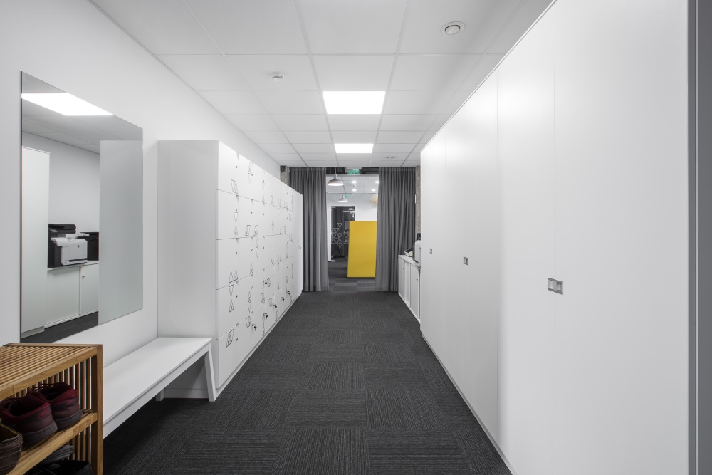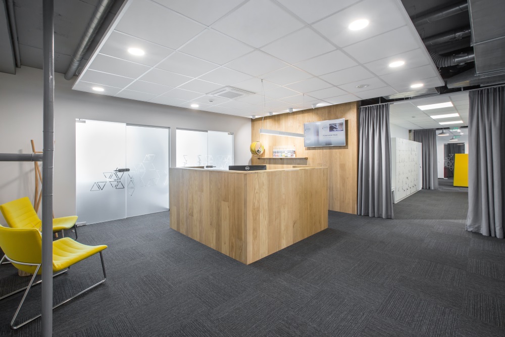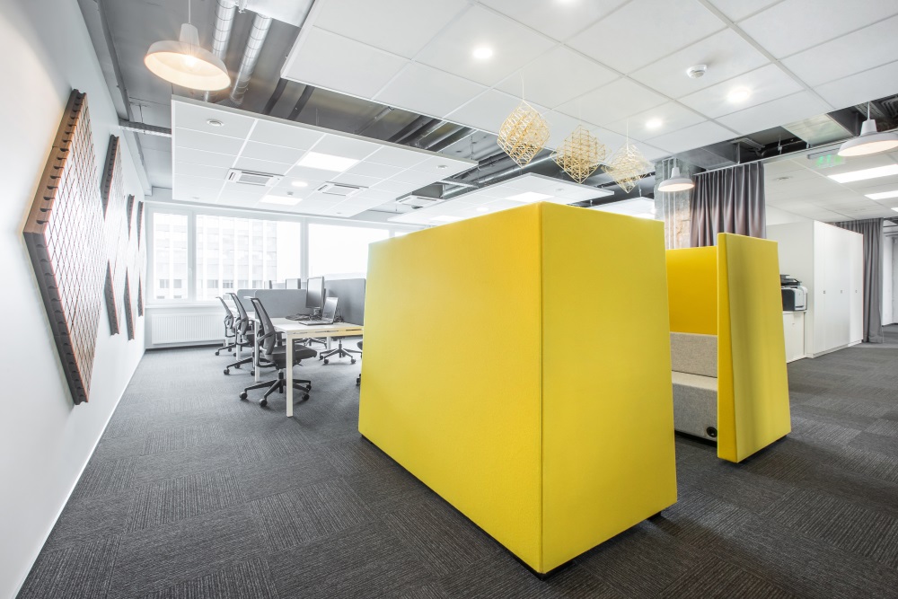Pagrindinė architektėms tekusi užduotis – sename rekonstruojamame pastate sukurti šiuolaikišką atvirą biurą, kuriame dalijamasi darbo vietomis ir daug dėmesio skiriama darbuotojų komfortabilumui. Dėl šių priežasčių jos dalį patalpų atskyrė akustinėmis stiklo pertvaromis. Garsą patalpose slopina ir akustinės lubos, ir speciali kiliminė danga, ir baldų pertvarėlės bei aukštos atkaltės.