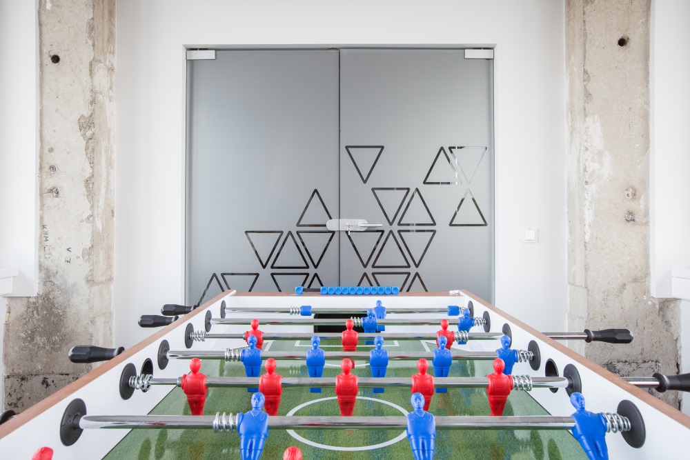 Šalia grupinio darbo zonos esanti siena nudažyta melsvais kreidiniais dažais. Ant jos darbuotojai gali rašyti, braižyti schemas ar tiesiog piešti. Architektė A. Tutlys sako, kad standartinė balta lenta ribotų laisvą komandos diskusiją.