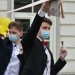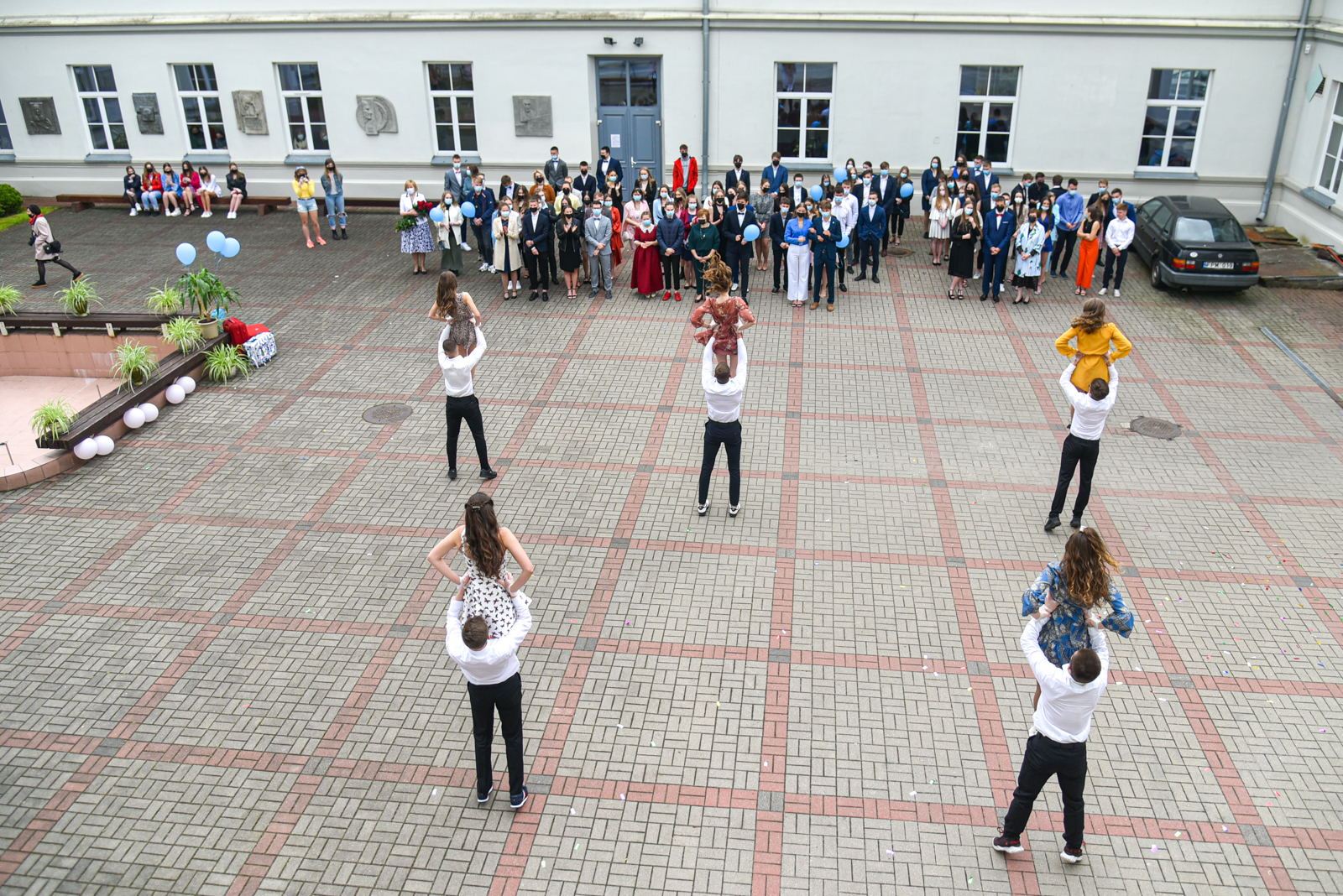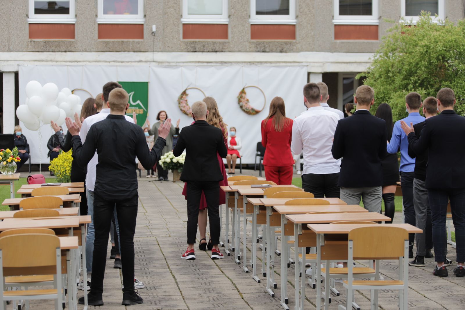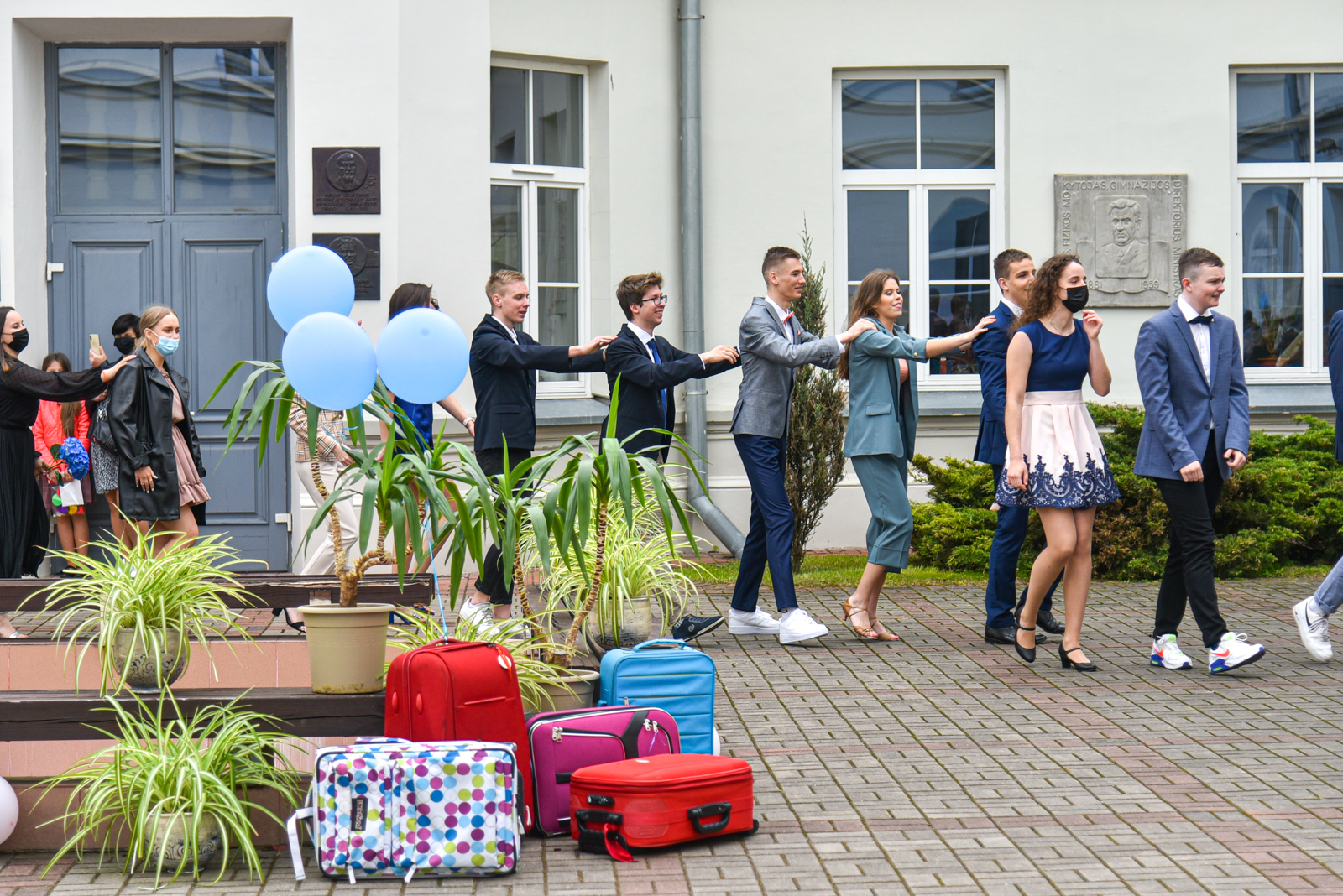 Pasipuošę abiturientai, išpuošti automobiliai, virš veidus dengiančių kaukių besišypsančios akys ir slapčia nuriedėjusios ašaros paliekant mokyklą, gėlės mokytojams, balionai niekur nedingo net ir per karantiną.