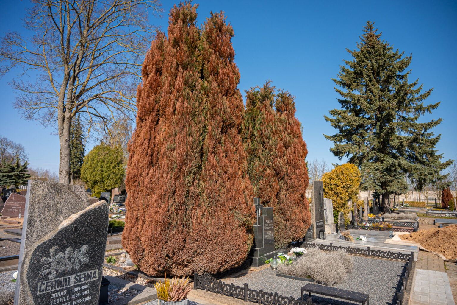 Panevėžietė sako kone su siaubu išvydusi ir ant kelių kapaviečių daug metų augančias tujas – visiškai nurudusias ir, regis, nebegyvas.