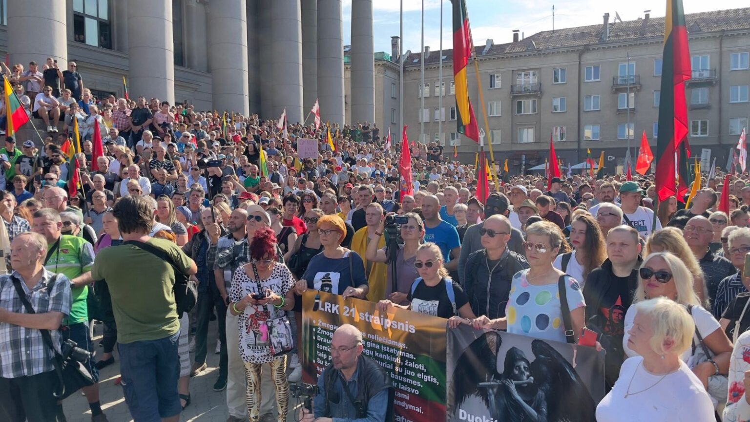 Apie 5 tūkst. žmonių rugpjūčio 10 dieną buvo susirinkę prie Seimo Vilniuje išreikšti nepritarimą Vyriausybės planuojamiems ribojimams, skirtiems imuniteto nuo koronaviruso neturintiems ir nesitestuojantiems žmonėms.