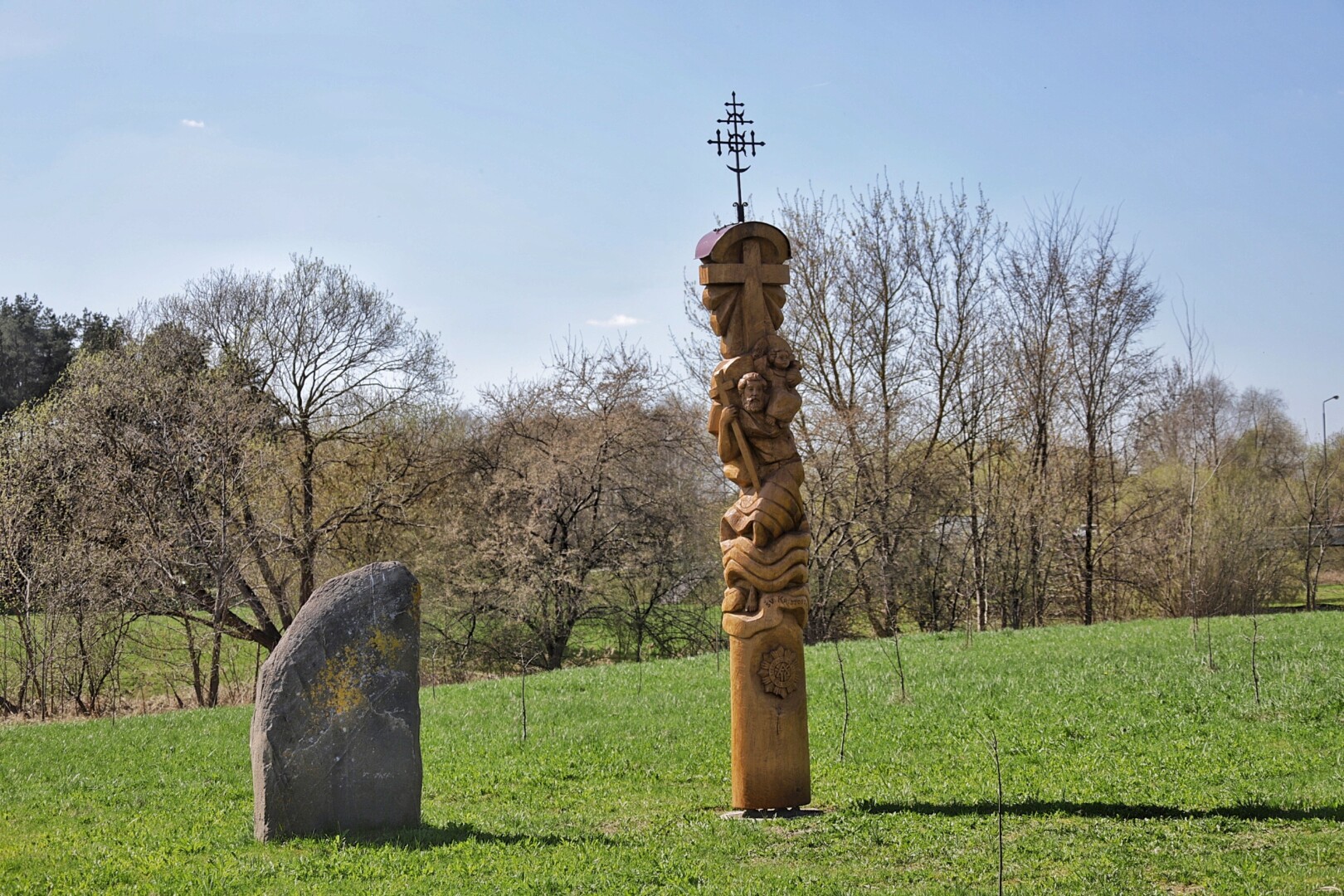 Perkeliamos statulos stosis šalia Upės gatvės ąžuolyne pastatytos taip pat medinės šventojo Kristoforo statulos.