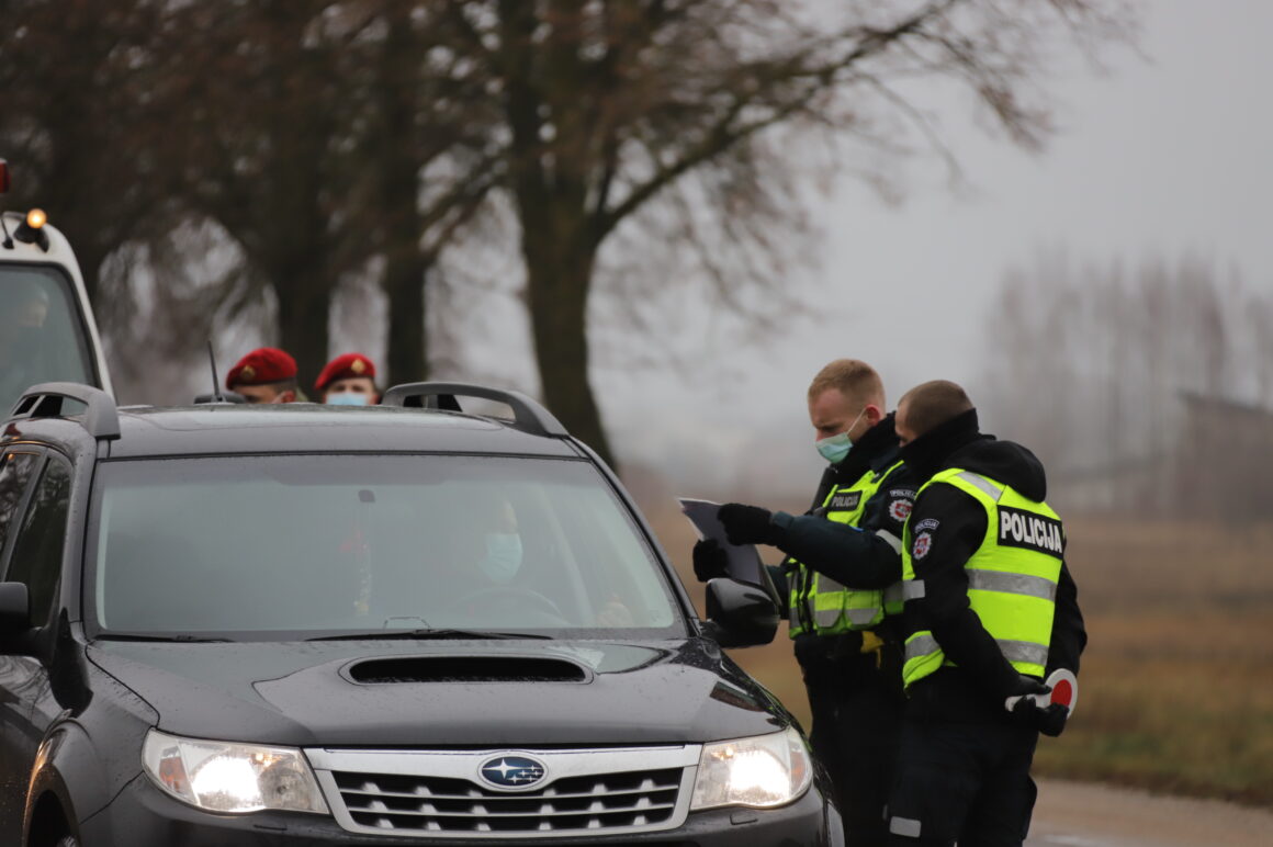Užtikrinant judėjimo ribojimą tarp savivaldybių šalyje dirba apie 900 policijos ekipažų, jiems talkina šauliai, pasieniečiai, karo policija.