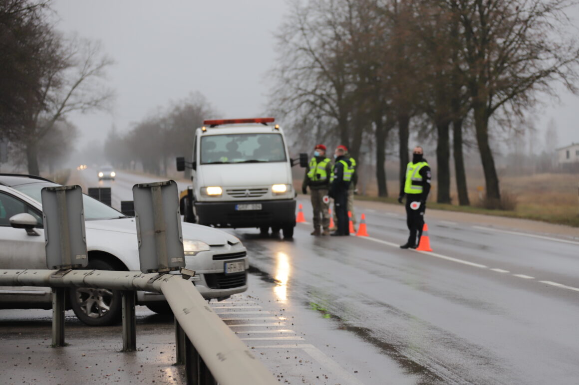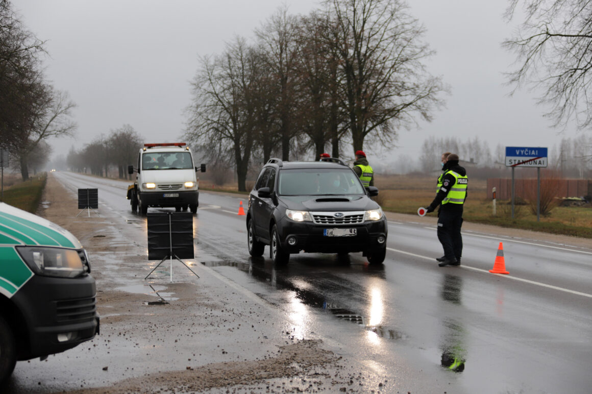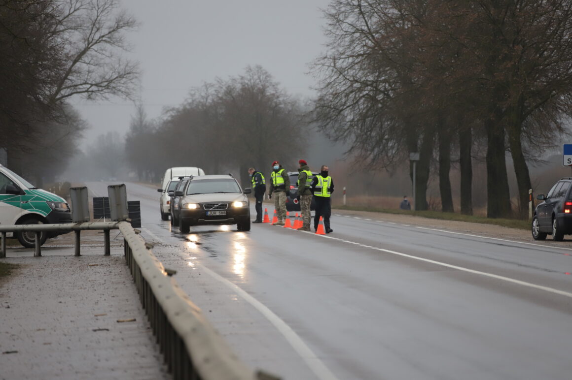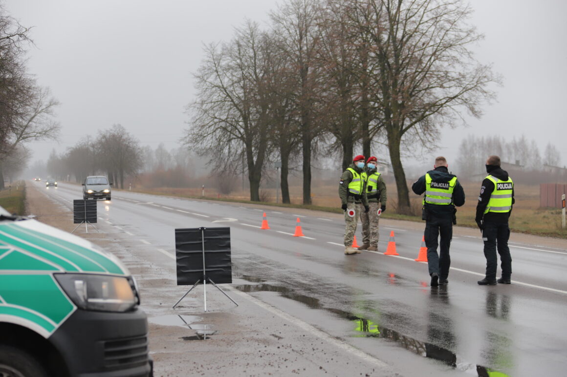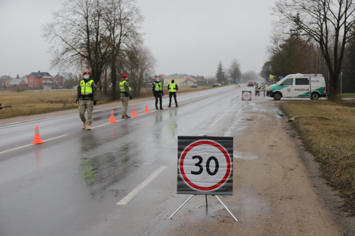 Užtikrinant judėjimo ribojimą tarp savivaldybių šalyje dirba apie 900 policijos ekipažų, jiems talkina šauliai, pasieniečiai, karo policija.