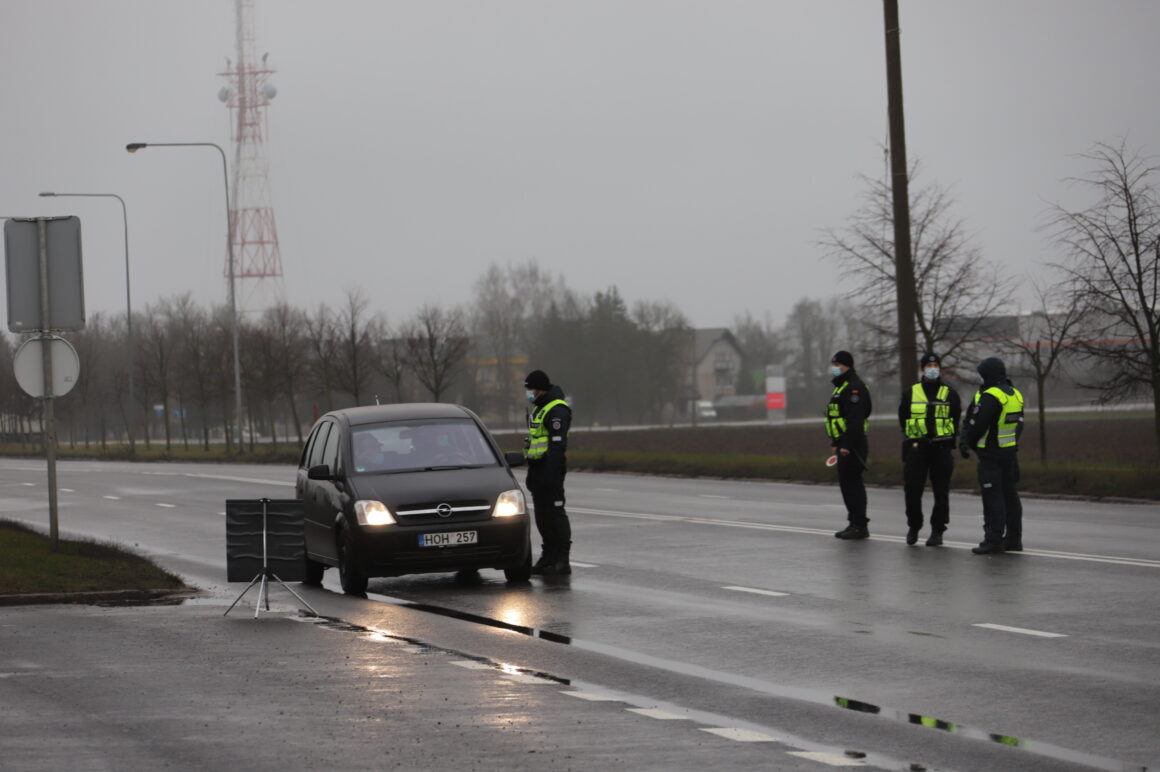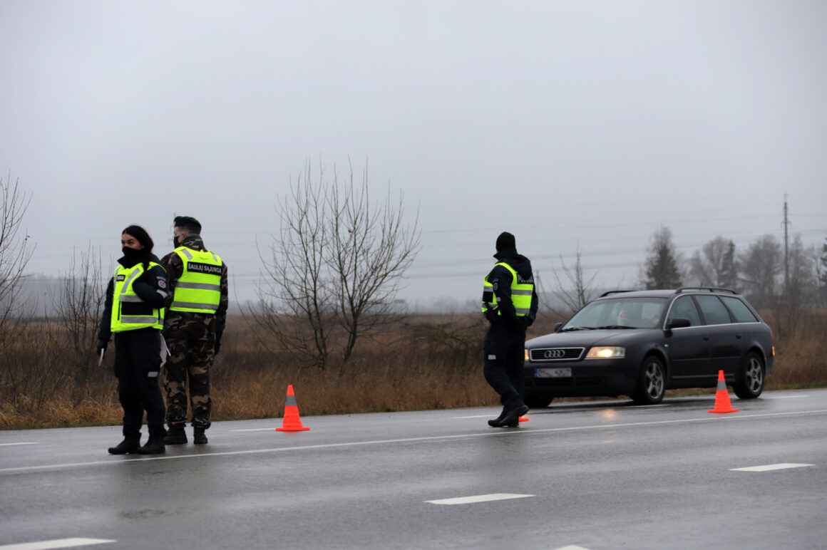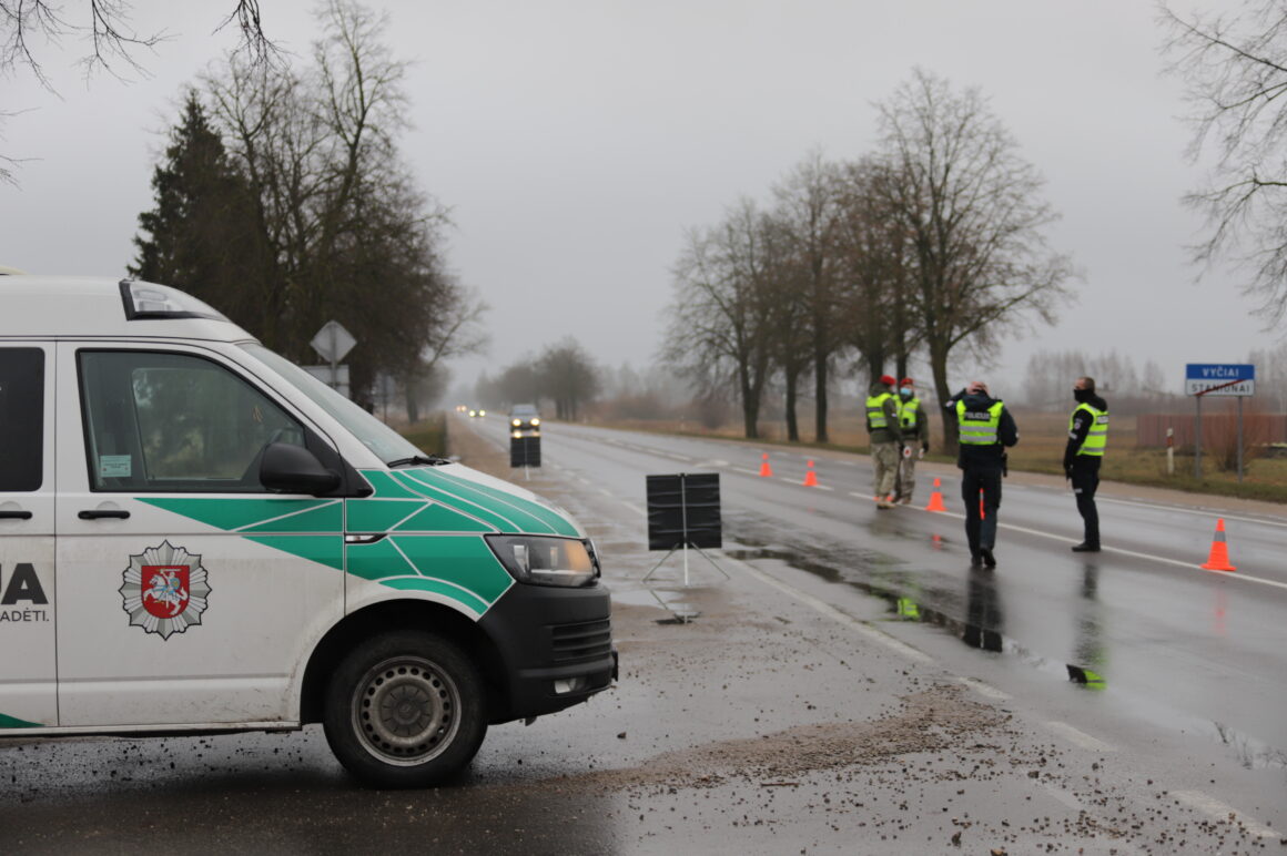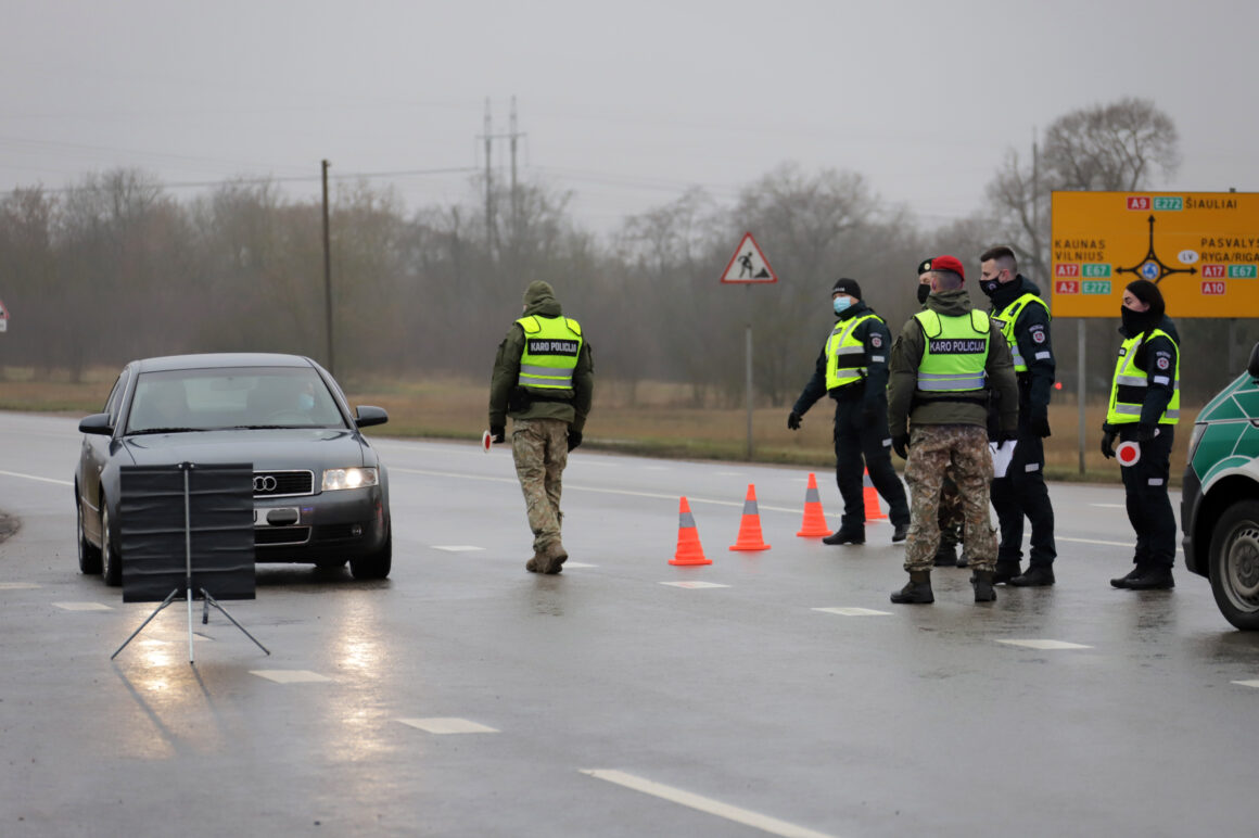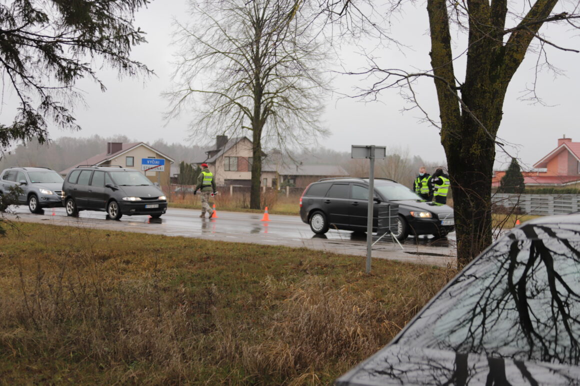 Užtikrinant judėjimo ribojimą tarp savivaldybių šalyje dirba apie 900 policijos ekipažų, jiems talkina šauliai, pasieniečiai, karo policija.