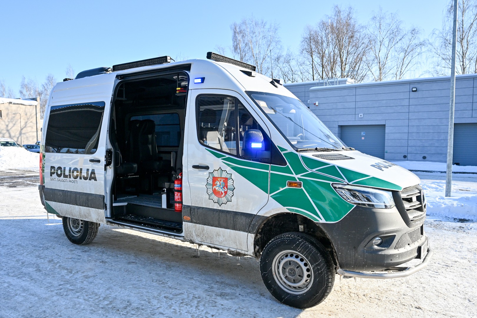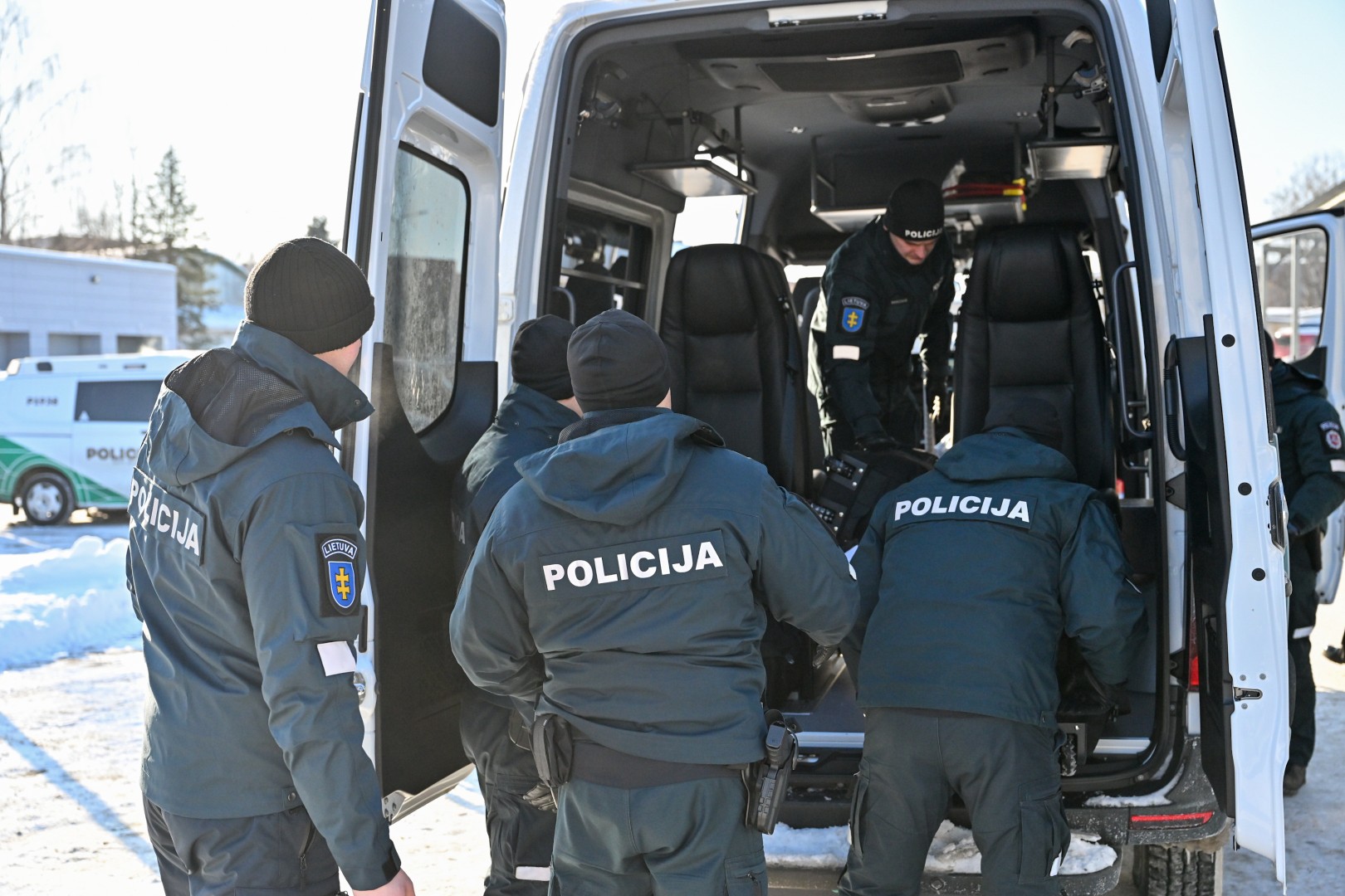 Jame įrengtos aštuonios patogios sėdimosios vietos, leidžiančios pareigūnams komfortiškai sėdėti vilkint ne kasdienes policijos uniformas, o antiriaušinę aprangą.