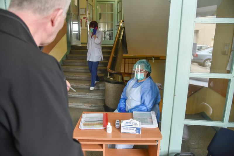 Prie poliklinikos durų įrengtame poste slaugytojos keičiasi kas dvi valandas. Pavaduotoja tikina, jog darbuotojos aprūpintos būtinosiomis apsaugos priemonėmis: pirštinėmis, kaukėmis.
