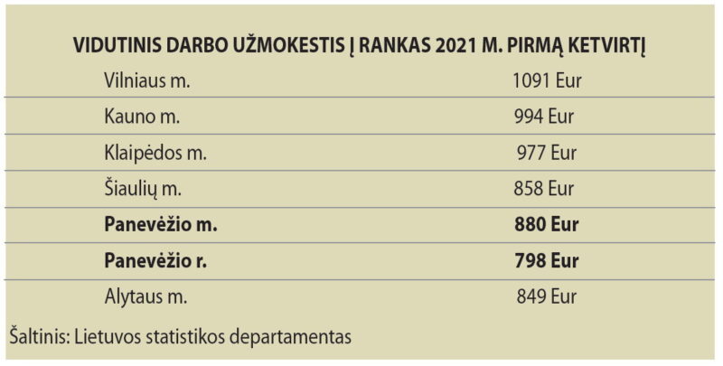 Panevėžio vidutinį atlyginimą lenkia ne tik sostinė, bet netgi Akmenės, Jonavos, Kėdainių, Trakų, Mažeikių rajonų bei Elektrėnų ir Visagino savivaldybės.