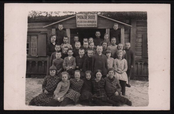 Marinos Kulčinskajos dovana: Mikierių (Panevėžio apskr., Šimonių vlsč.) pradžios mokyklos mokinių su mokytoja Skučaite nuotrauka. XX a. 4 deš.