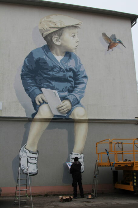 „Jį piešėme žiemą, visai netikėtai tokiu laiku. Dirbome lauke, porą dienų buvo labai šalta, tad fizinis iššūkis buvo nemenkas. Bet sušildė labai malonus bendruomenės priėmimas ir puikus galutinis rezultatas“, – šypsosi dailininkas.