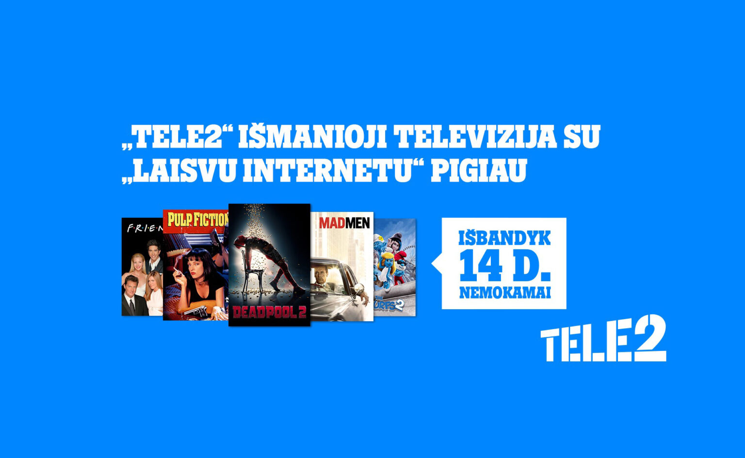 Naujoji išmanios televizijos paslauga siūlo populiariausius lietuviškus bei pasaulio televizijos kanalus jūsų pasirinktame ekrane – kompiuteryje, mobiliajame telefone ar planšetėje ir išmaniuosiuose televizoriuose. Šiuo metu „Tele2 išmaniąją televiziją verta įsigyti kartu su „Tele2 Laisvo interneto planu”.