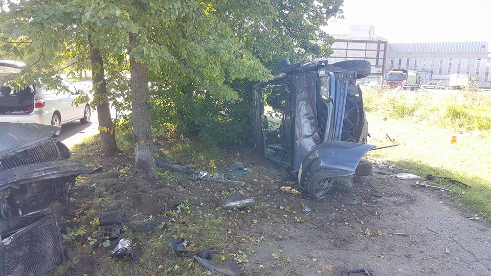 Iš „Renault Espace“ automobilio beliko tik metalo laužo krūva, automobilio vairuotoja greitosios pagalbos automobiliu skubiai išgabenta į ligoninę.