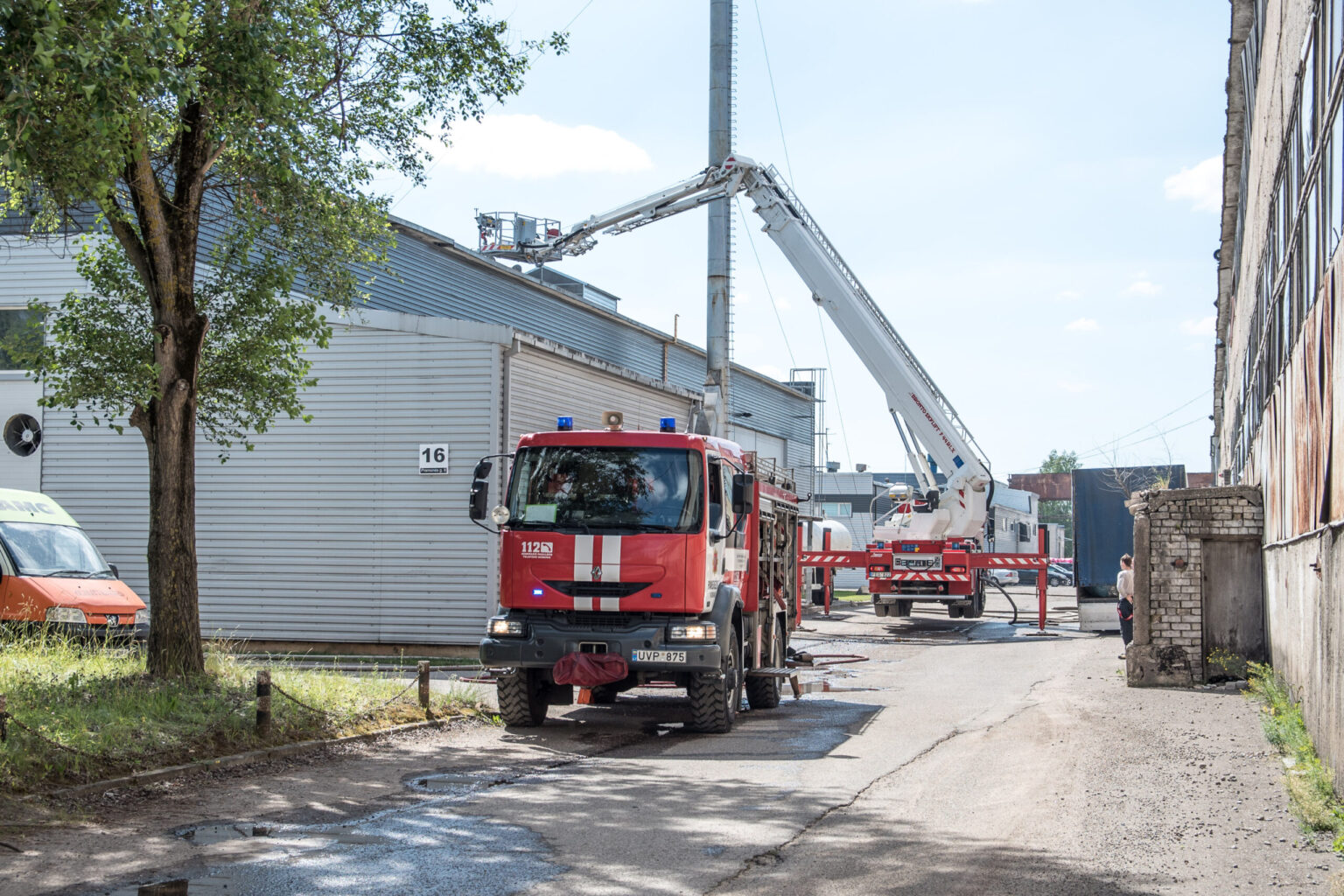 Trečiadienio popietę gausios ugniagesių gelbėtojų pajėgos skubėjo į Pramonės gatvę. Buvo gautas pranešimas, kad liepsnoja čia įsikūrusios gamyklos stogas.