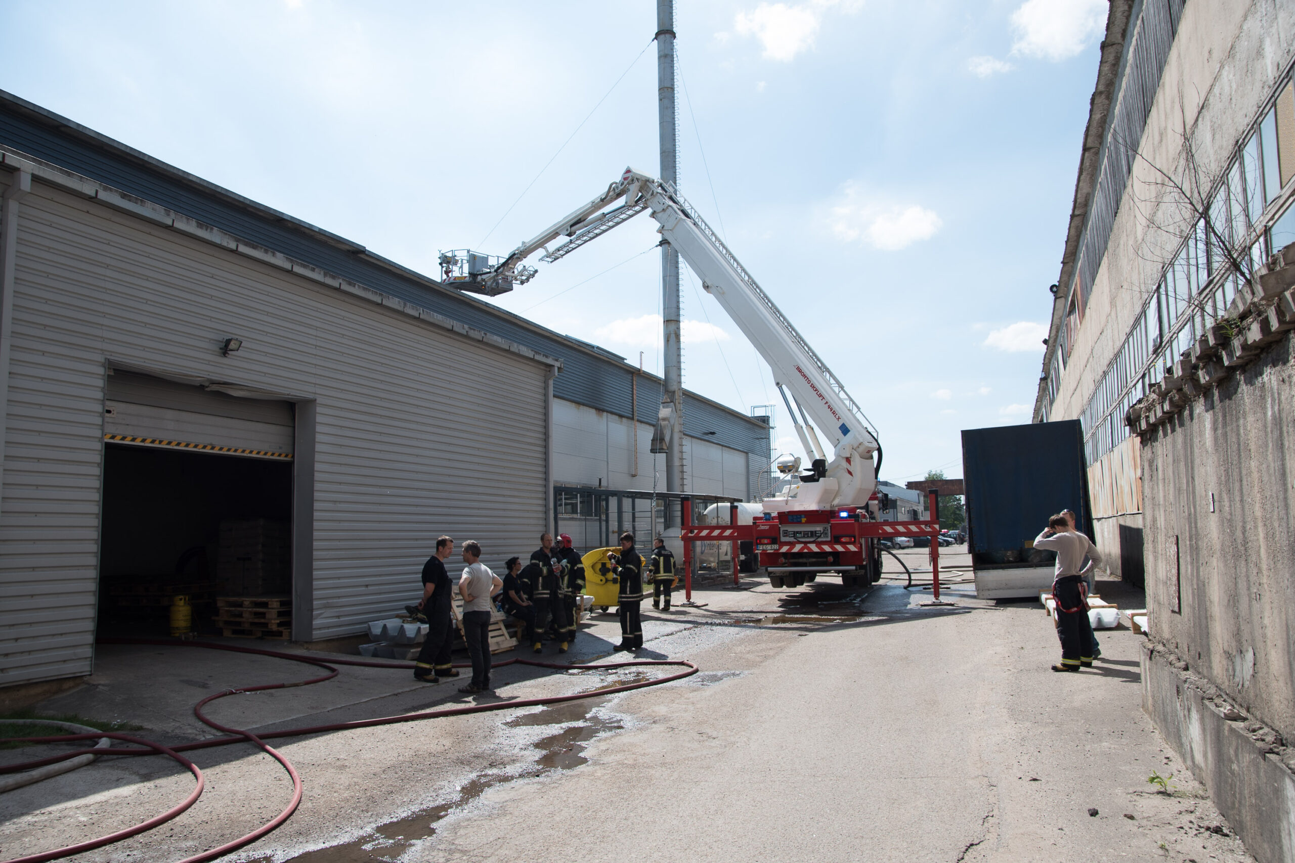 Trečiadienio popietę gausios ugniagesių gelbėtojų pajėgos skubėjo į Pramonės gatvę. Buvo gautas pranešimas, kad liepsnoja čia įsikūrusios gamyklos stogas.