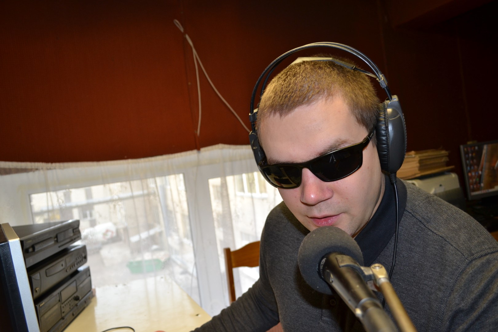 Prie pulto stovintis 39-erių Vidas Mekionis – įkvepiantis pavyzdys, kaip siekti svajonių ir mėgautis gyvenimu, net jei ir negali matyti jo spalvų. Nuo paauglystės svajojęs tapti radijo laidų vedėju, panevėžietis jau du dešimtmečius radijo bangomis sveikina klausytojus.