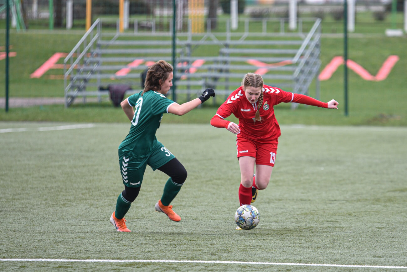 Per pirmuosius tris turus panevėžietės iškovojo dvi pergales bei patyrė vieną pralaimėjimą. Pirmenybių starte trenerio Vaido Garšvinsko auklėtinės namuose 11:2 sutriuškino FK „Saned-Joniškio SC“ futbolininkes. Nugalėtojoms net šešis įvarčius pelnė Tereza Romanovskaja, du – Vesta Ilgūnaitė, po vieną – Manfreda Bartusevičiūtė, Marija Stankevičiūtė ir Vakarė Kiaunytė.