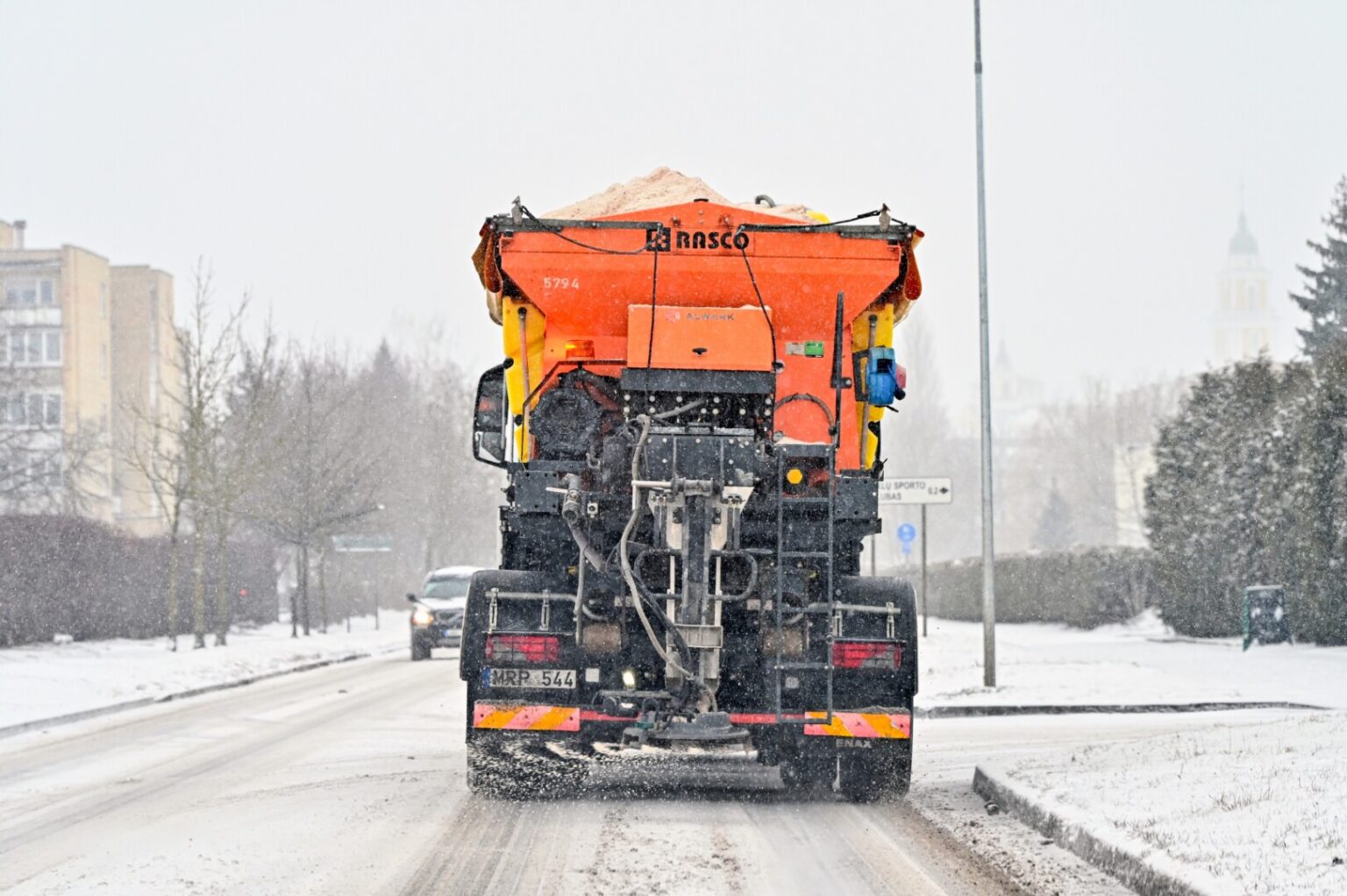 Siekiant užtikrinti saugų judėjimą, nuo šiandien popietės AB „Panevėžio specialus autotransportas“ technika intensyviai valo ir barsto miesto pagrindines gatves.