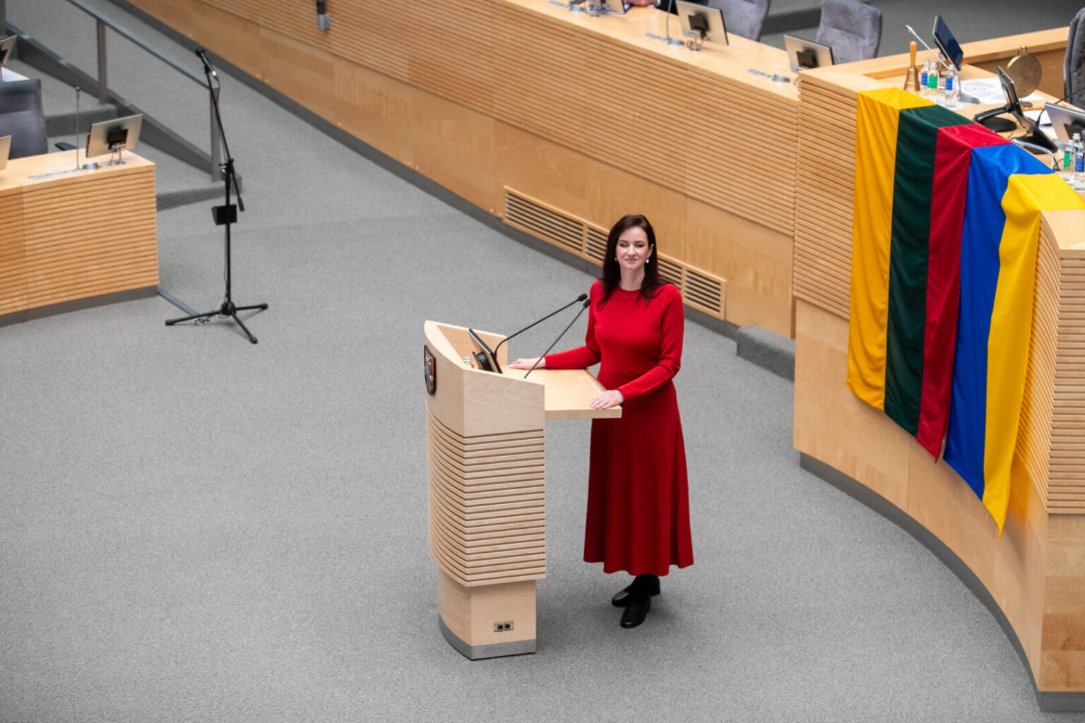 Jis taip pat paprašė pateikti šį sprendimą pagrindžiančius dokumentus – Seimo, Vyriausybės ar parlamento kanceliarijos įsakymą, potvarkį, protokolinį sprendimą ar kitą teisės aktą, kuriuo būtų aiškiai nustatyta užsienio valstybės vėliavos pakabinimo galimybė Seimo posėdžių salėje.