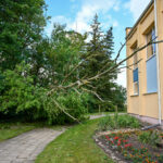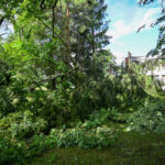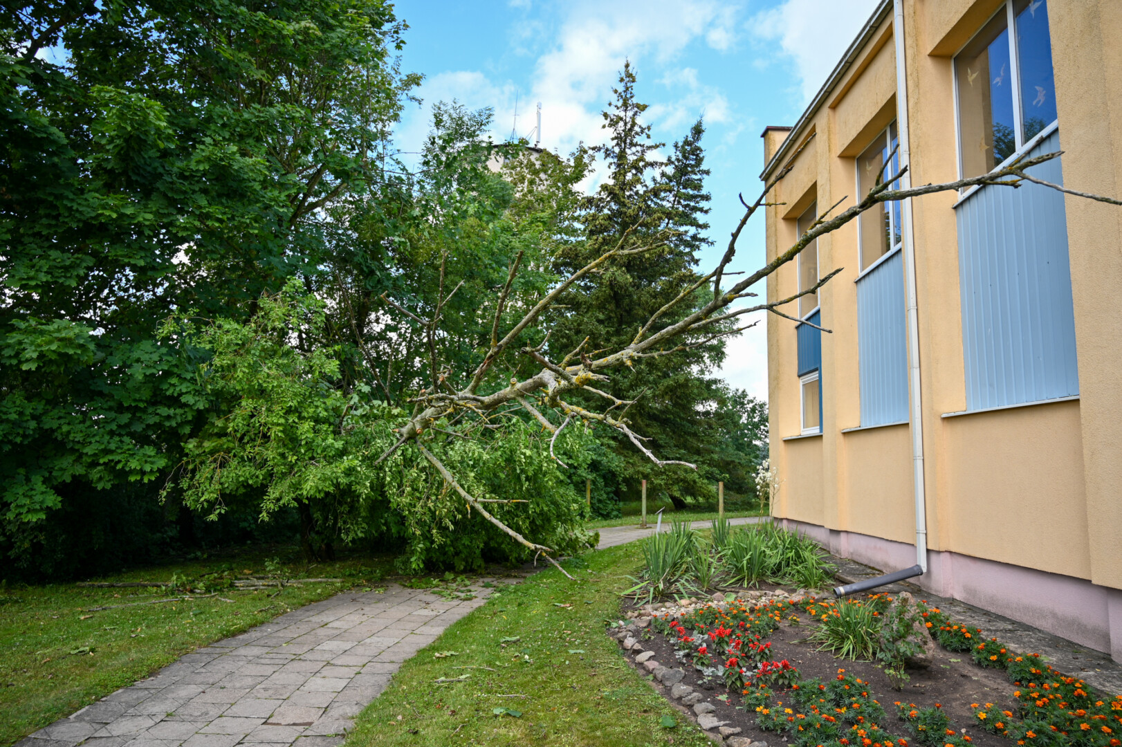 Daugybė prilaužytų medžių ir prie Raguvos gimnazijos. Vėjas vertė bei laužė medžius ir parke.