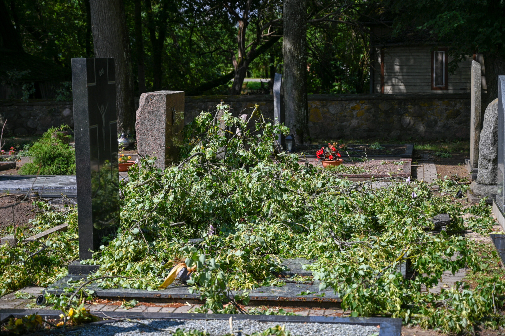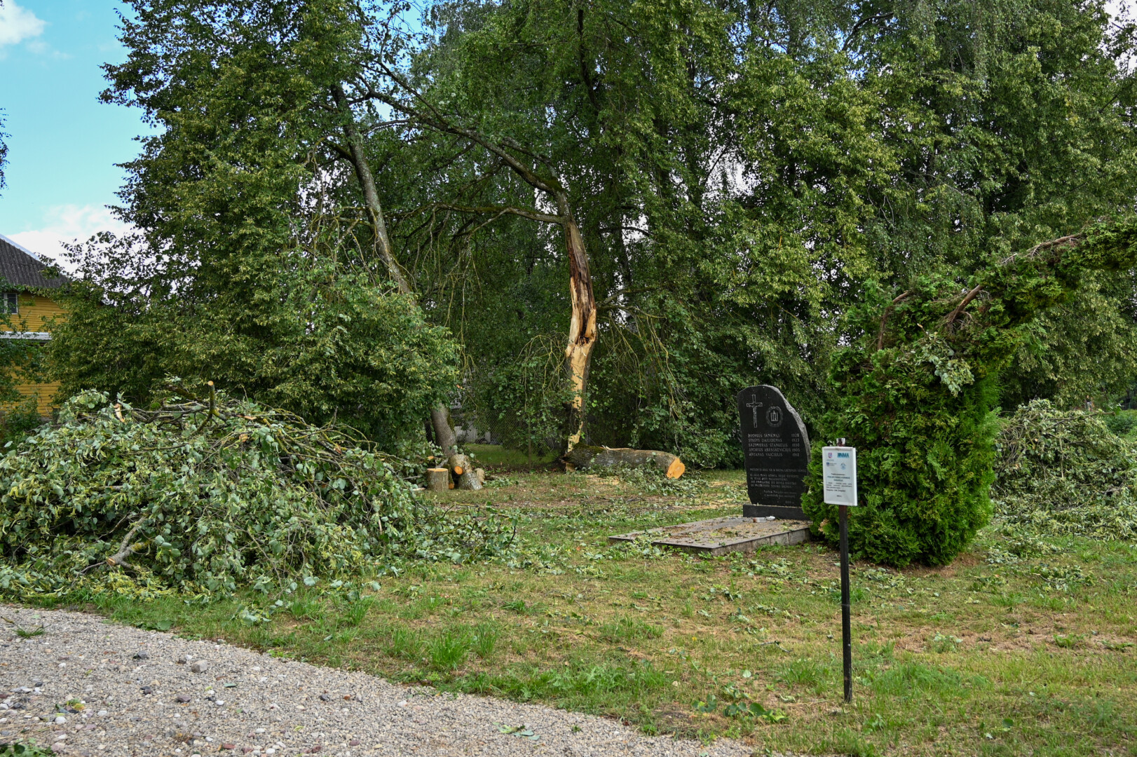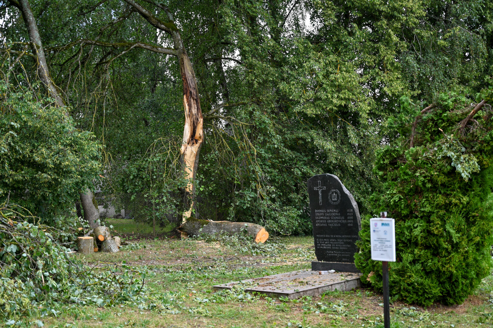 Atėjusi pažiūrėti, ar nieko nenutiko paminklams, Genė Kartanienė sako nuostolių nepastebėjusi. Jos pačios kieme didžiulis vėjas nulaužė kriaušės šaką.