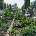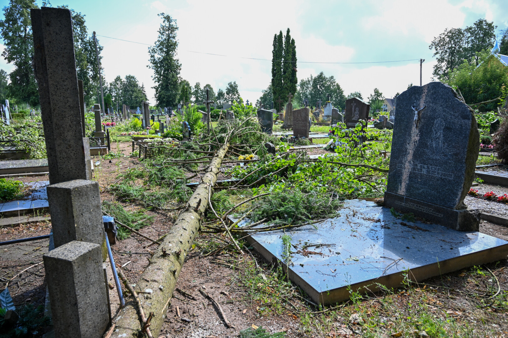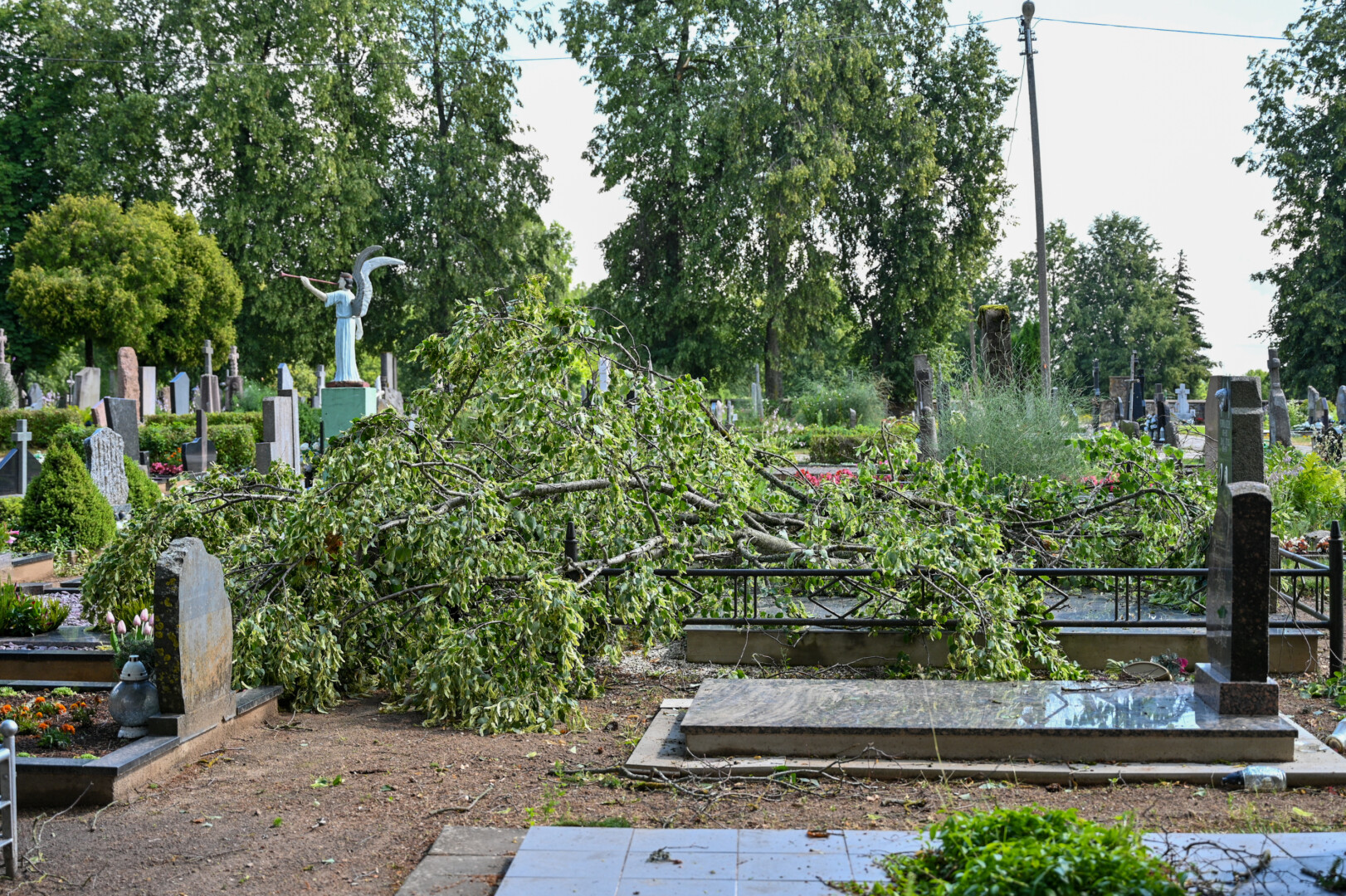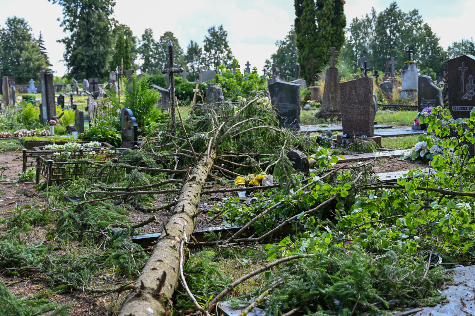 Atėjusi pažiūrėti, ar nieko nenutiko paminklams, Genė Kartanienė sako nuostolių nepastebėjusi. Jos pačios kieme didžiulis vėjas nulaužė kriaušės šaką.