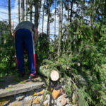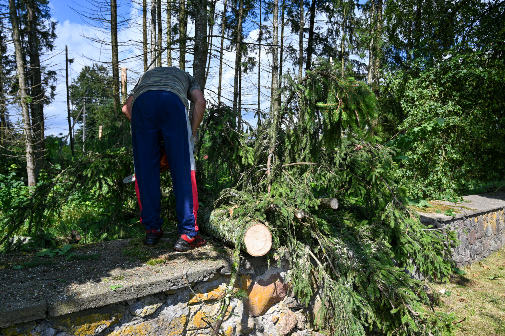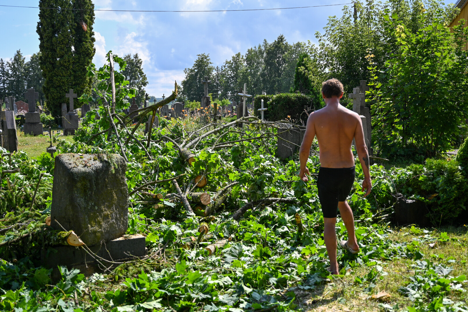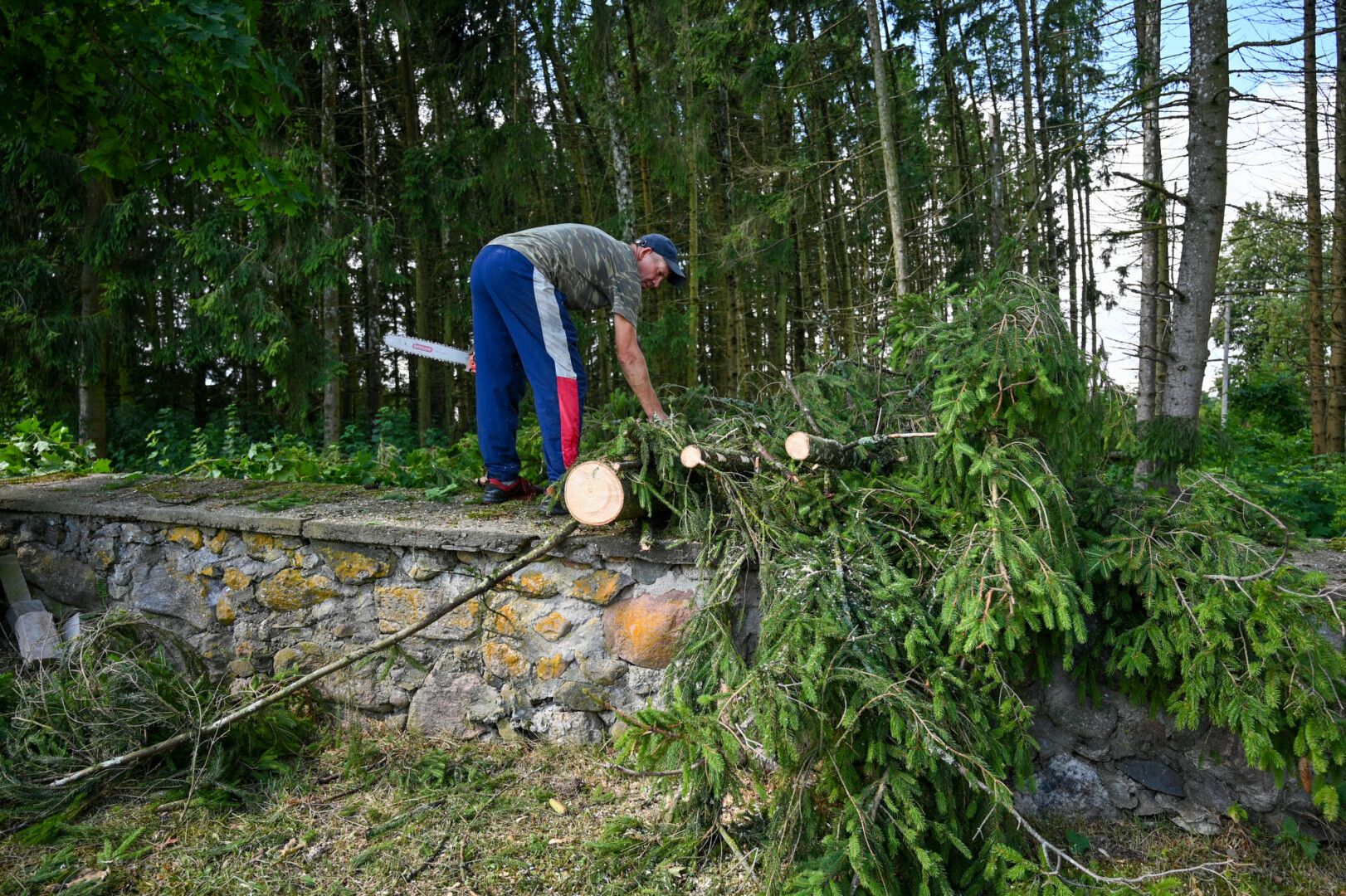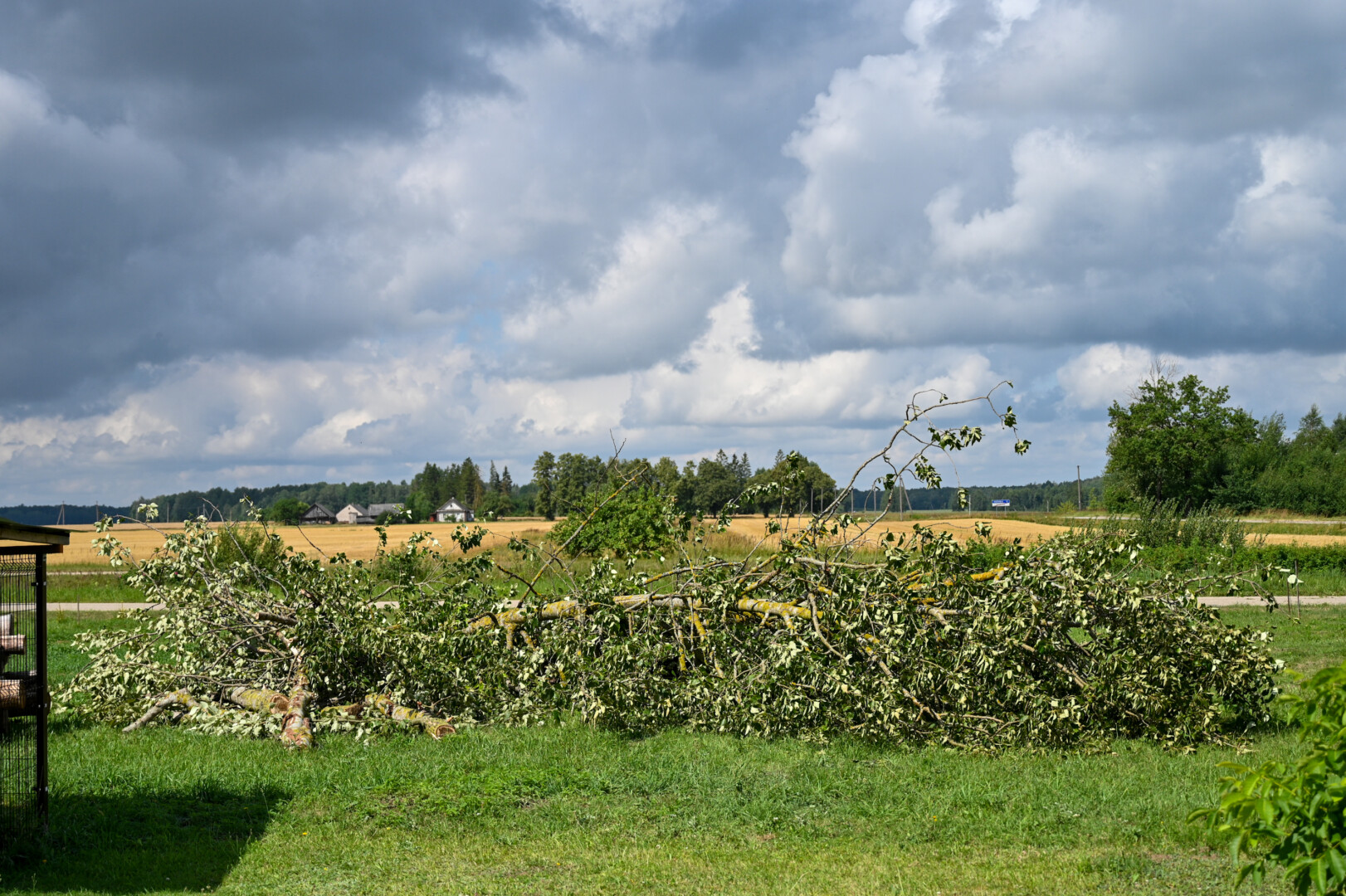 Raguviškiai tvarkė baisios audros padarinius: pjaustė kiemuose, kapinėse nuvirtusius medžius, šlavė nuplėštas smulkesnes šakeles, skubėjo lopyti kiaurus ūkinių pastatų stogus.