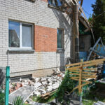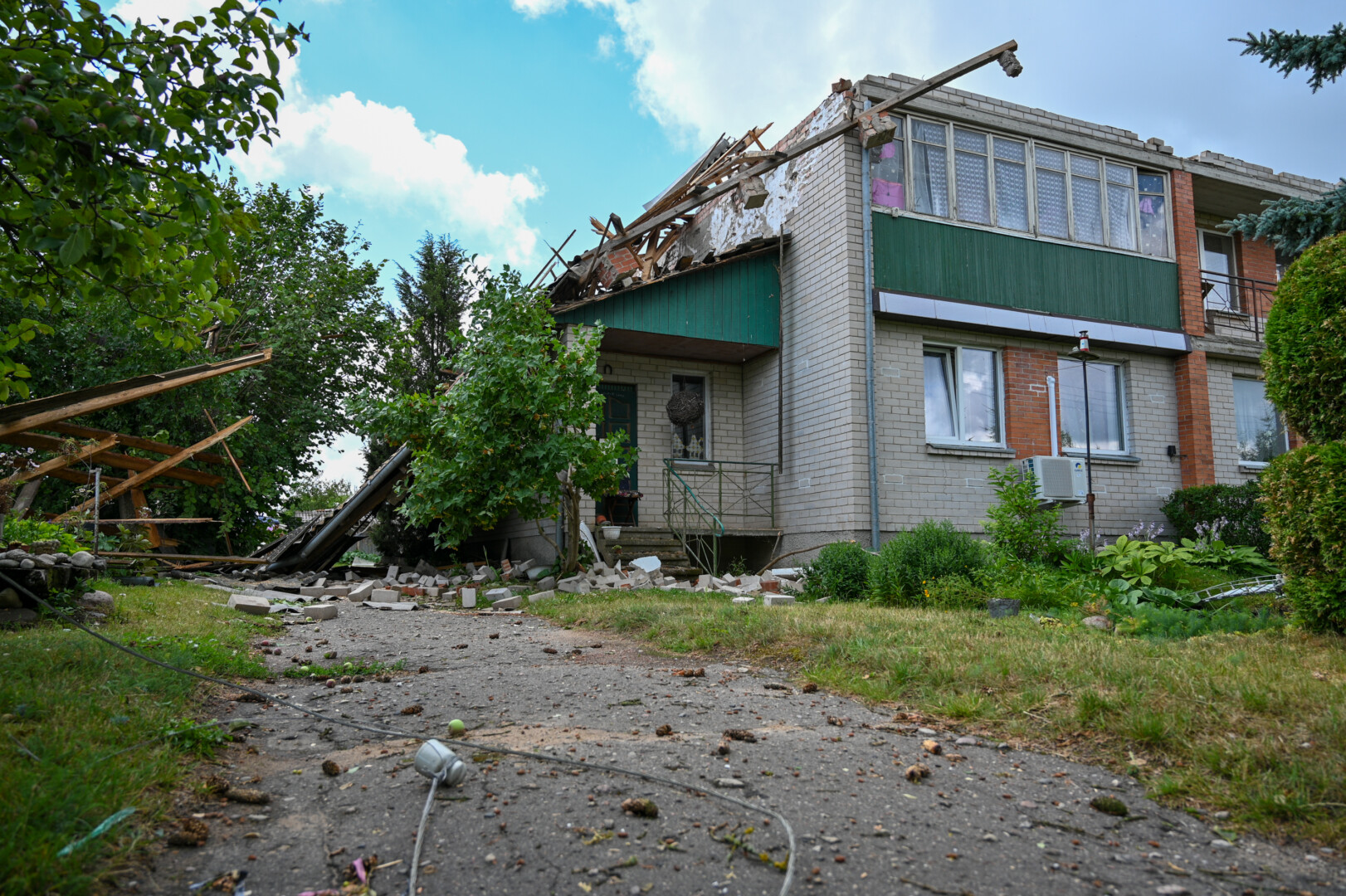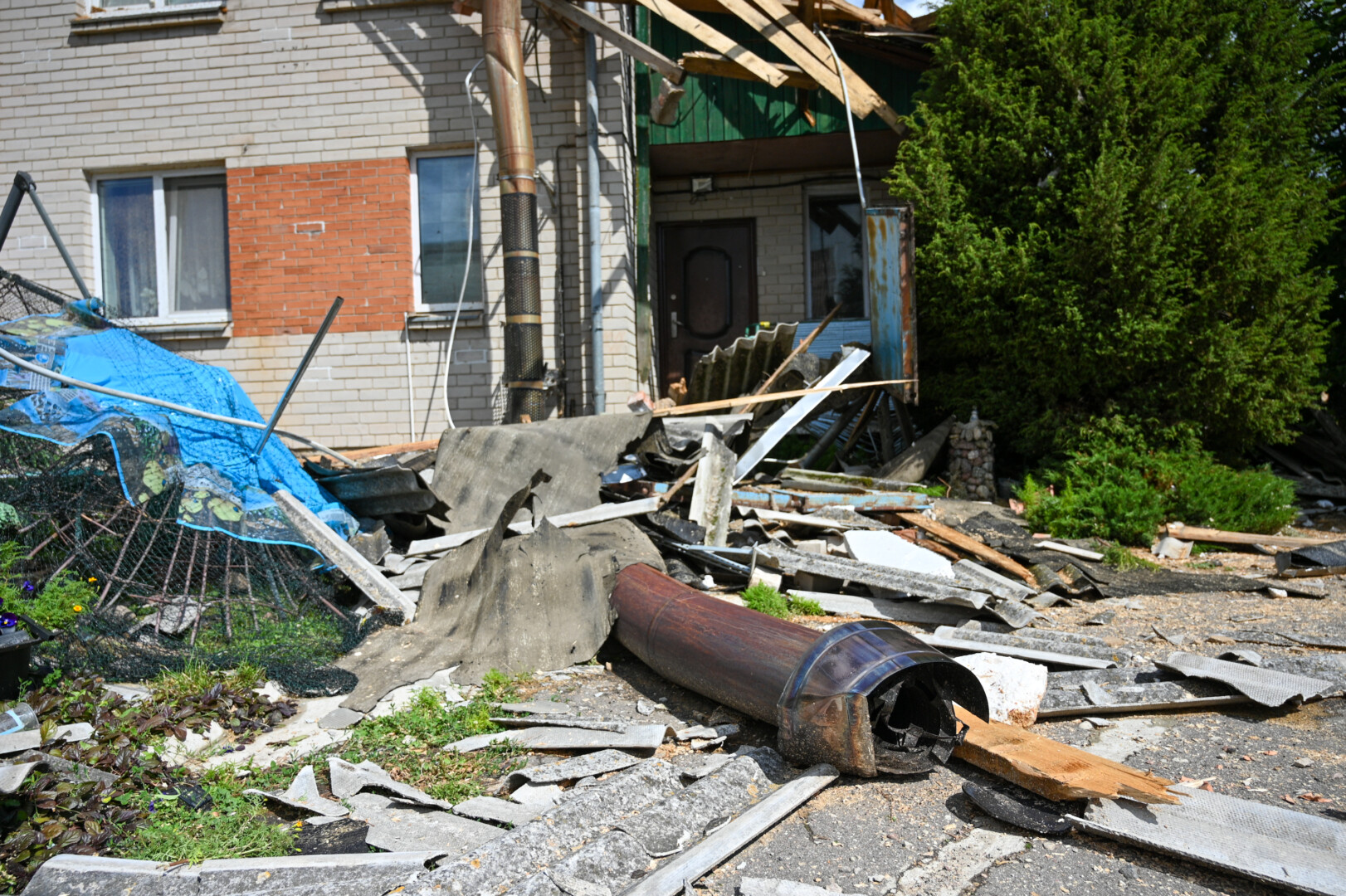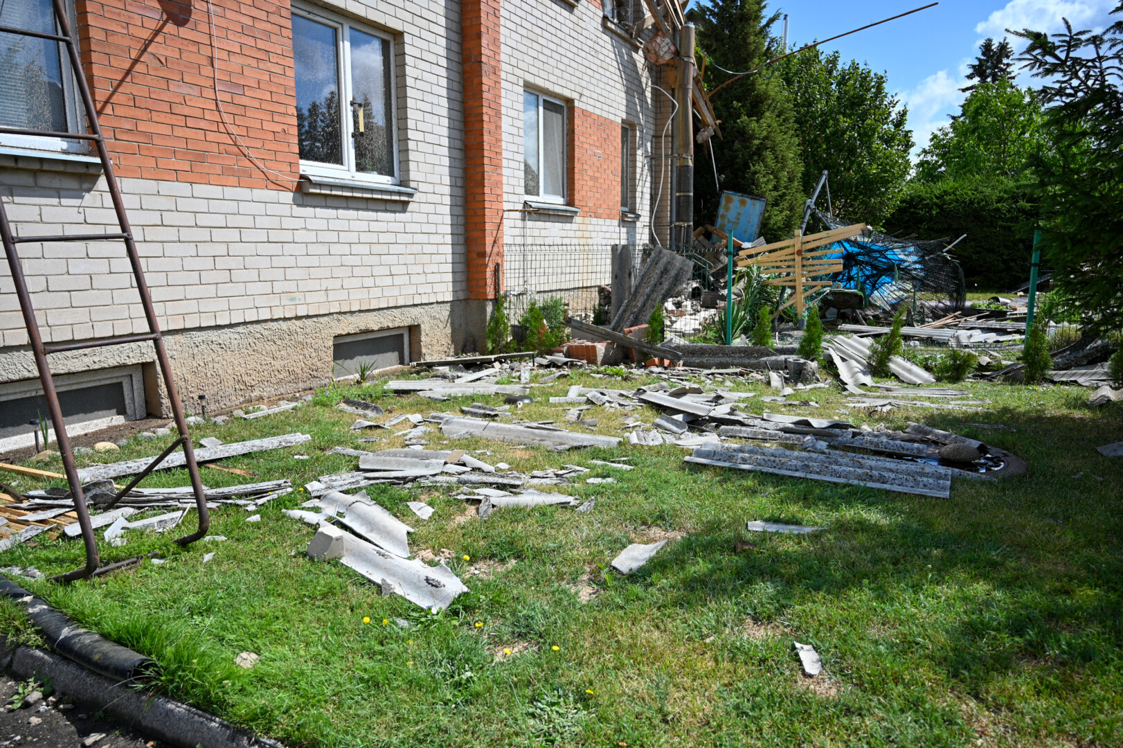 Pačiame miestelio pakraštyje stūksantis dviejų aukštų dvibutis mūrinukas visai liko be stogo. Aplink namą mėtėsi nutraukti elektros laidai, nulaužtos medžių šakos. Kritusi stogo konstrukcija visiškai užtvėrė vieną įėjimą į kiemą.