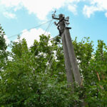 Raguviškė piktinosi, kad elektrikai nesiskubina – penktadienį ant tvoros tebekabėjo pakibę laidai. Jie mėtėsi ir po kiemą, o pats elektros stulpas pasviręs į namo pusę.