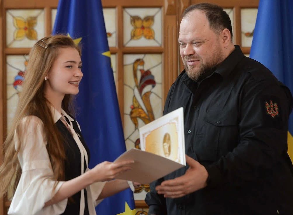 Už drąsius reportažus ir savanorišką veiklą Jekateriną Kusmarovą apdovanojo Ukrainos parlamento pirmininkas Ruslanas Stefančukas. E. Butrimo nuotr.