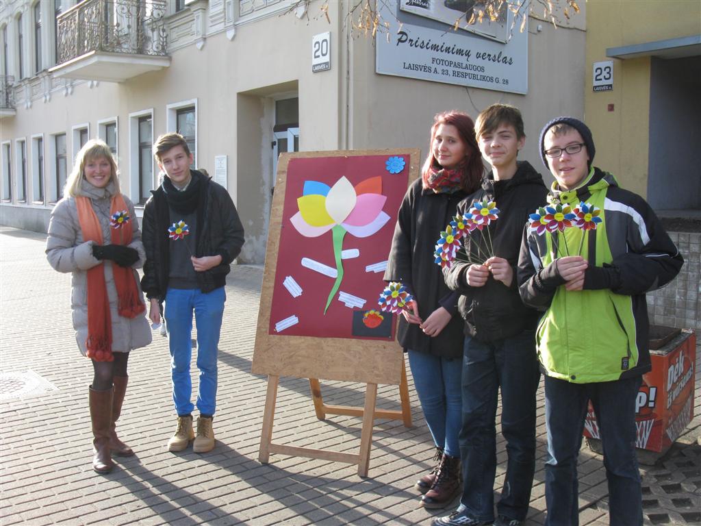Visą šią savaitę mokiniai per technologijų, etikos pamokas gamino tolerancijos gėles, jomis penktadienį papuošė mokyklą. Juk gėlės paprastai yra dovanojamos draugui ar mylimam žmogui, o kartais ir susitaikymo proga. Kabindami gėles mokiniai suprato, jog skiria jas ne tik draugams, bet ir tiems, kurių galbūt nemėgsta, kurie yra kitokie, bet juos toleruoja, priima tokius, kokie yra.