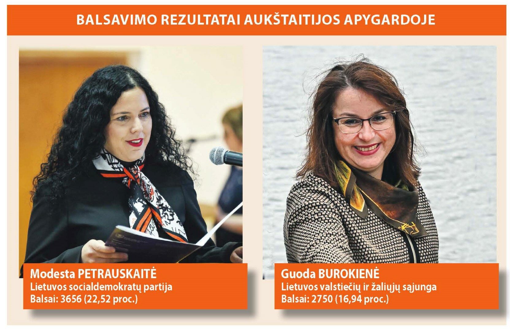 Aukštaitijos apygardoje, apimančioje didžiąją dalį Panevėžio rajono ir dalį miesto, į antrąjį turą patekusiai parlamentarei valstiečių atstovei Guodai Burokienei teks gerokai pasistengti dėl rinkėjų pasitikėjimo varžantis su kol kas daugiau balsų gavusia rajono Tarybos nare socialdemokrate Modesta Petrauskaite.