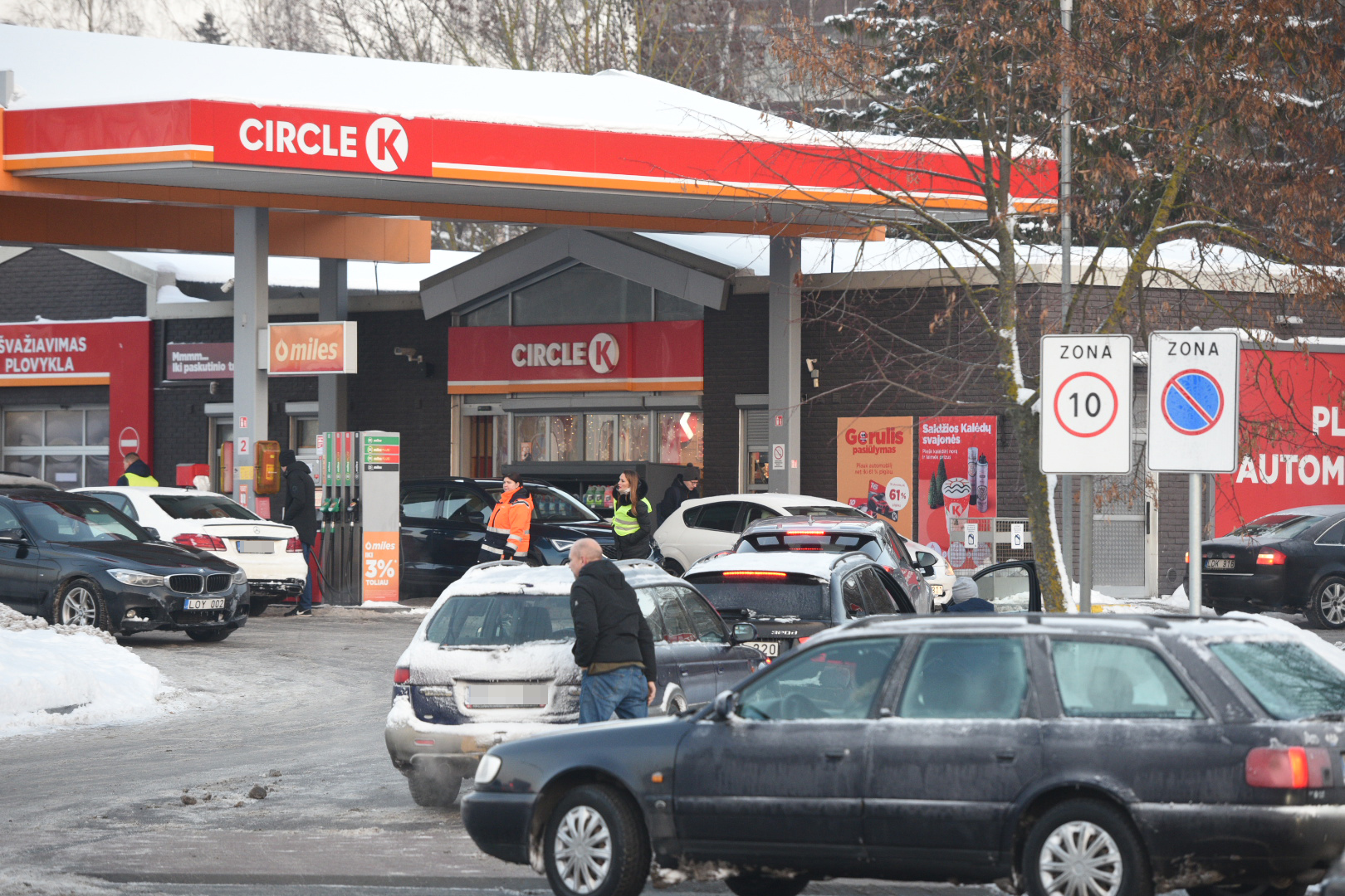 Panevėžyje ketvirtadienio popietę gatvėse nusidriekė kolonos automobilių, laukiančių eilės įsipilti pigesnių degalų.