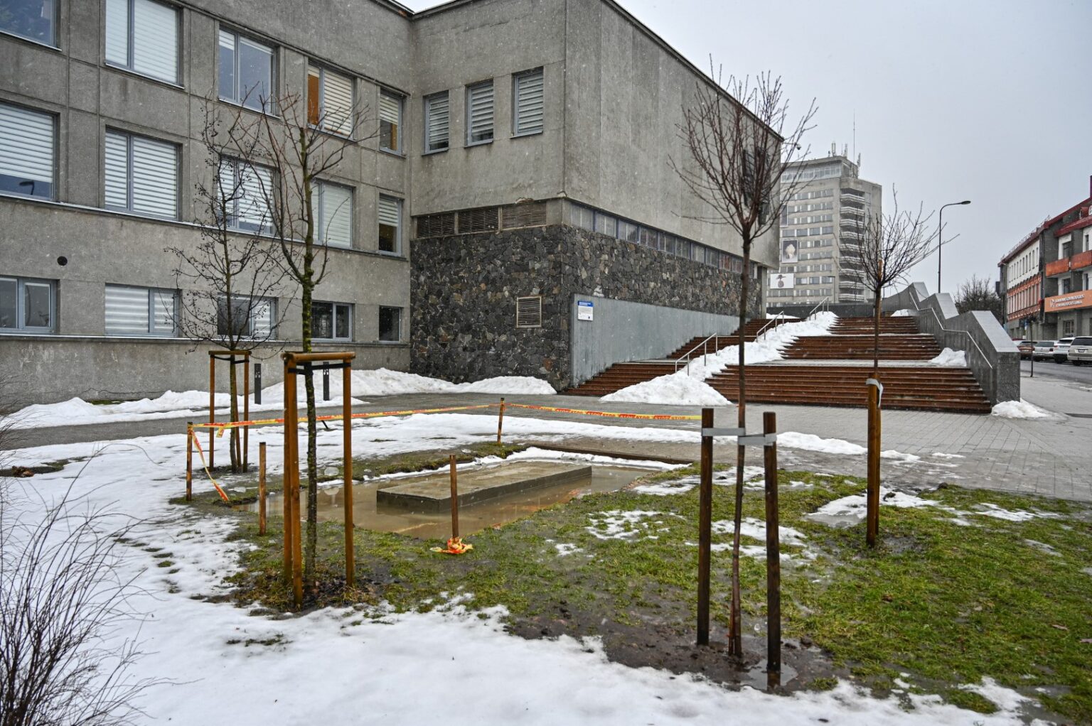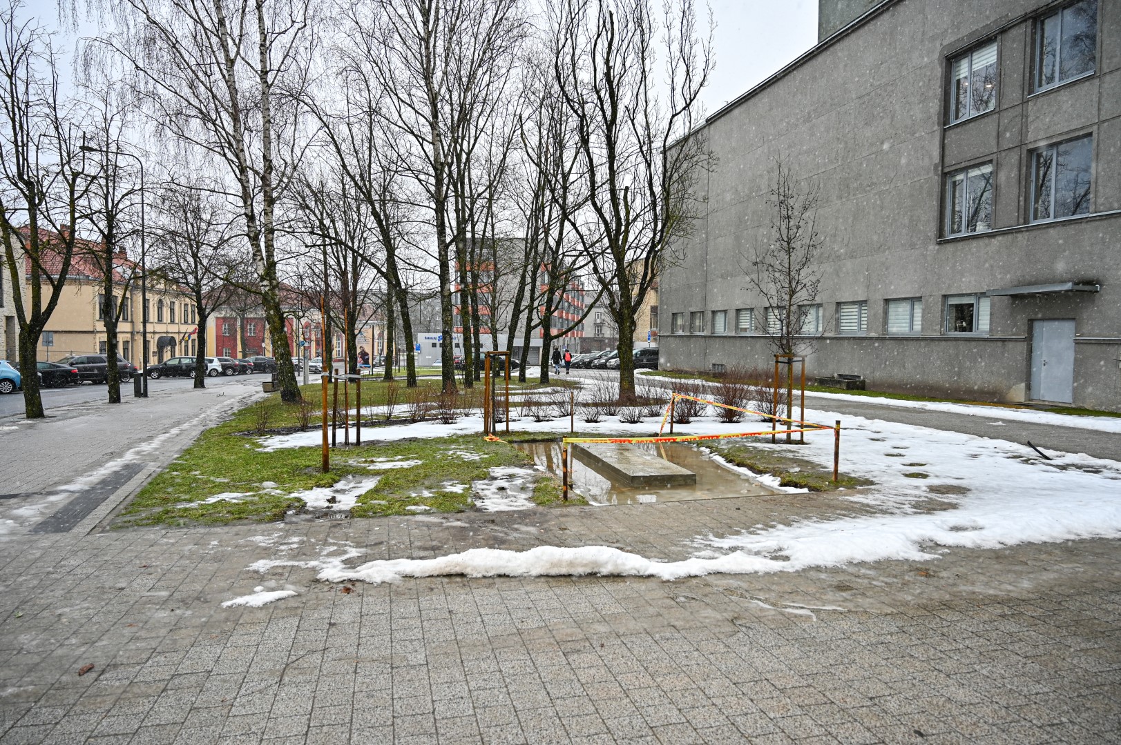 Skverelyje tarp teatro ir Elektros gatvės jau pradėti skulptūros šiai teatro legendai pastatymo darbai.
