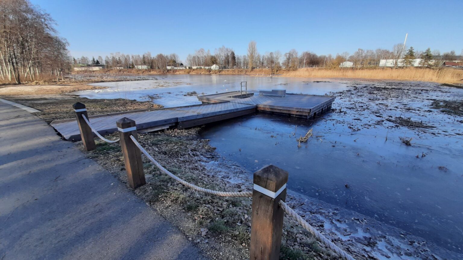 Vaizdingas posakis „dingo kaip į vandenį“ Panevėžyje įgavo tiesioginę prasmę. Neseniai sutvarkytoje „Ekrano“ marių pakrantėje pradingo viena iš šešių pontoninių prieplaukų. Prižiūrėtojai tvirtina, kad nunešta potvynio, dabar ji saugiai pritvirtinta prie stataus marių kranto ir į savo vietą bus parplukdyta nuslūgus vandeniui.